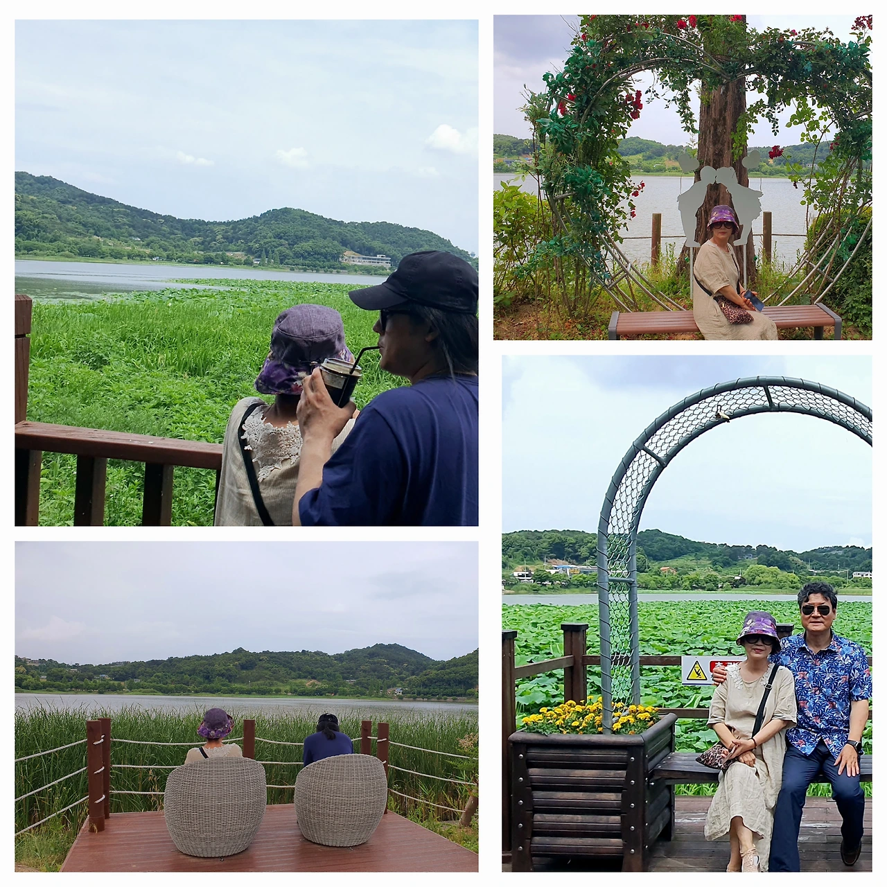 나중에 아들 집에 올 때마다 들리게 될 것 같다. 인공호수 주변에 눈길을 끄는 이쁜 카페와 음식점이 많았다. 그러나 호숫가 주변은 고즈넉하고 산책하기 좋은 분위기였다. 하루 음식 섭취 못지않게 운동 복용량으로 걷기를 중히 여기는 나는 호수변 데크길 걷기는 정말 누워서 떡 먹기다. 게다가 바람맞으며 꽃도 보며 걸으니 금상첨화였다.