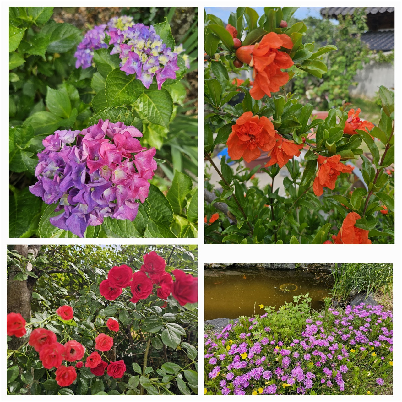 ▲ 남편이 심어놓은 석류나무가 마니 자랐다. 내가 심은 노랑 달맞이꽃도 해 마다 단골출연 손님이다.