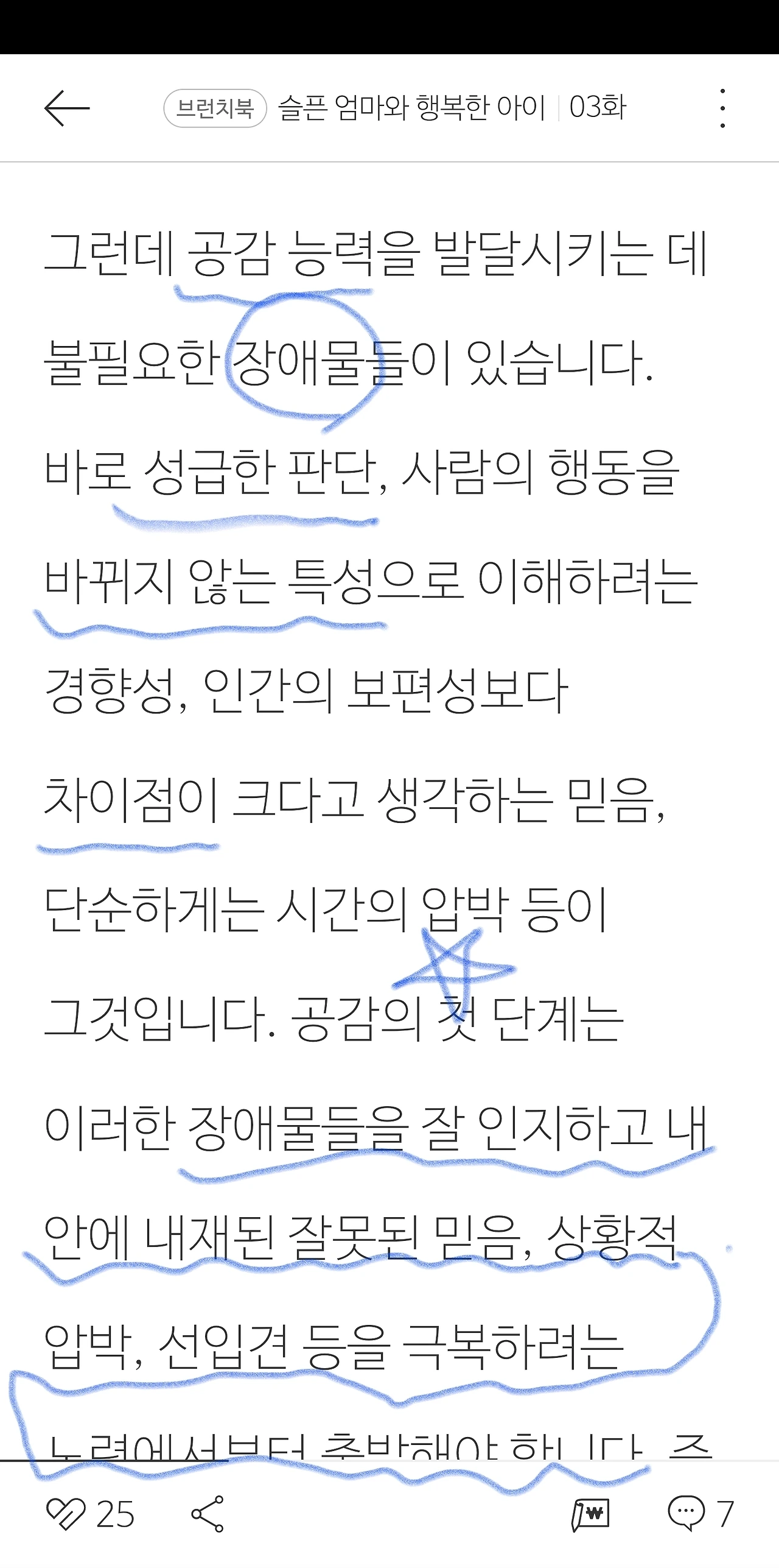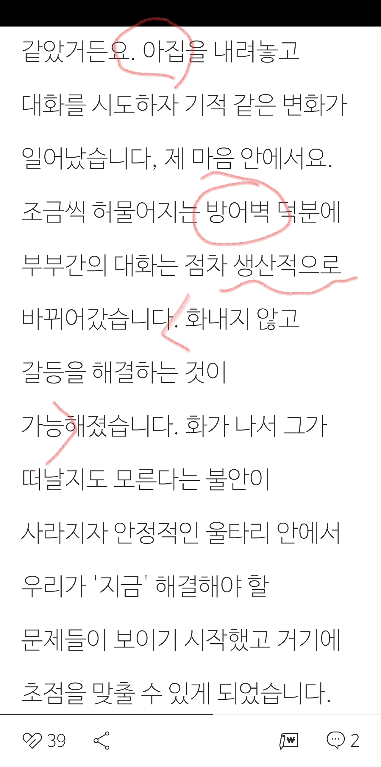 브런치 '밑줄 그으며 읽기'가 새로운 일도 아닌데 많이들 공감해 주셨다. 생각해 보니 그건 아마도 우리 모두 공통적으로 느끼던 부분이 있어서 공감을 불러왔다 본다.