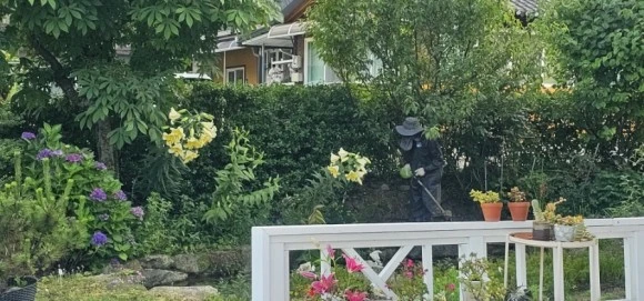 남편이 풀도 베고 백합을 바로 세워주러 들어갔다.