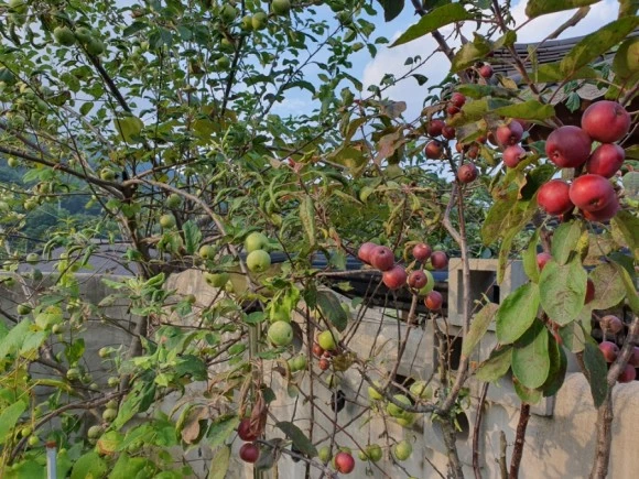 미니사과도 많이 열리고 그냥 사과는 너무 솎아주지 않아서 잘게 많이도 달렸다 ㅠㅜ