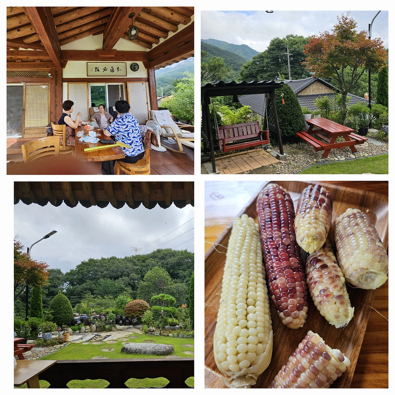 좀 있다 옥수수 삶던 마산 언니가 압력솥 김도 빼기 전에 솥째 받쳐 들고 오셨다. 이 집 옥수수는 결코 시장에서 돈 주고 사 먹을 수 없는 맛이다. 언니가 온도, 시간, 간도 딱 맞춰 옥수수를 쪄 내니 그 연함과 찰기가 정말 나무랄 데 없는 맛이다. 마산언니는 마산에 사시다 아저씨 고향마을로 돌아오셔 집을 지으셨는데 아저씨는 돌아가셨다.