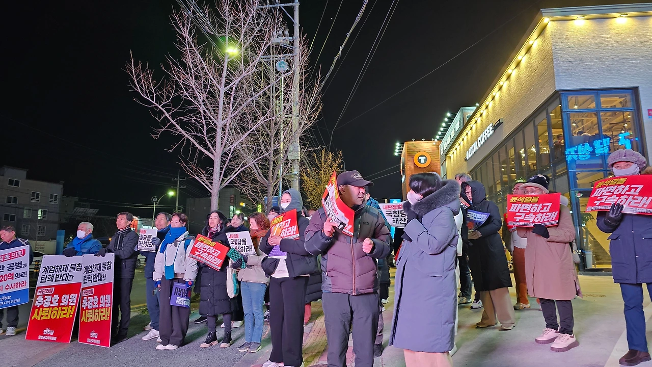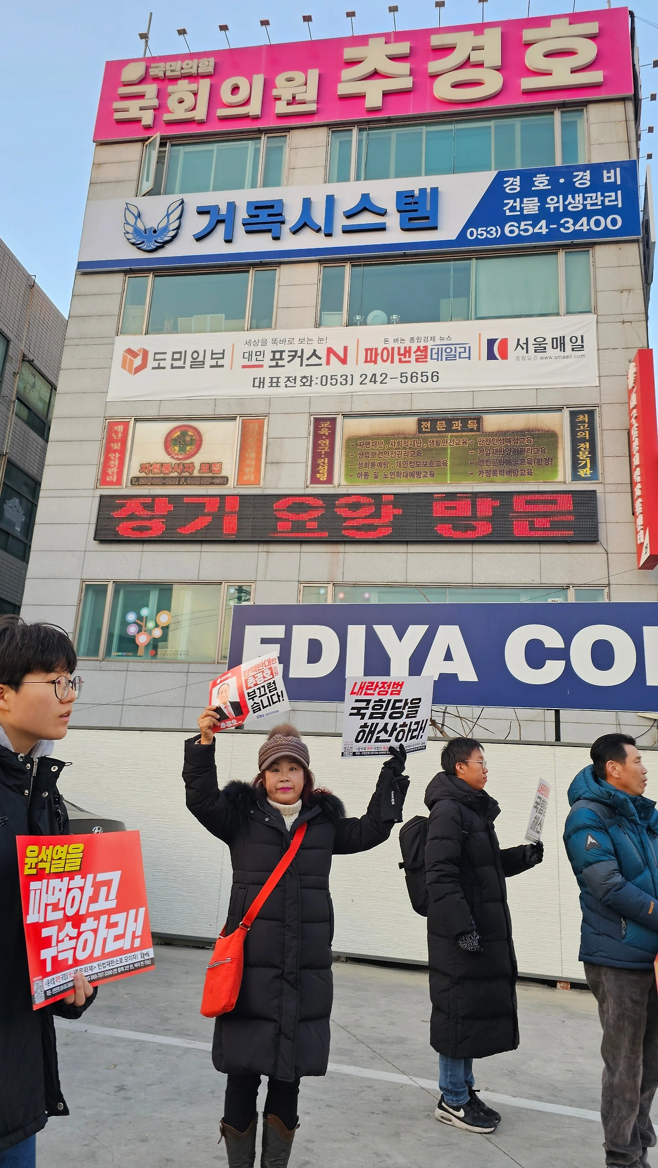 어제 내란 공범 추경호 사무실 앞으로 모였다.