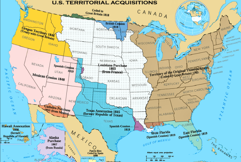 1789년 건국의 아버지들 중 1 빠인 조지 워싱턴의 지도 아래 연방국가가 발족하였고 그 후 미국은 파죽지세로 승승장구한다. 역시나 전쟁 자금이 딸린 나폴레옹으로부터 너무나도 헐값으로 루이지애나를 사들인 미국은 갑자기 영토가 2배가 된다.