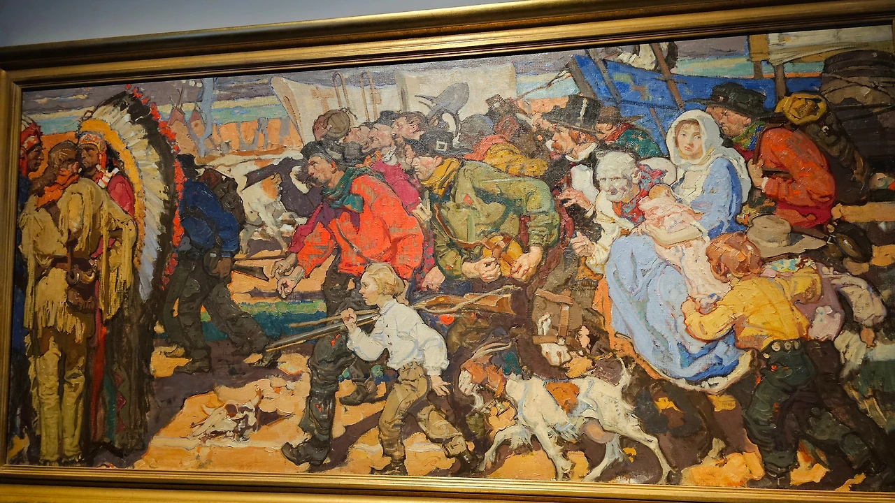 19세기 서부 지역 전경을 담은 이 그림은 미국이 영토를 확장하는 과정을 담은 중요한 기록으로 평가된다. 그림은 서부 개척에 나선 이주민들이 지붕이 있도록 마차를 타고 대평원을 가로지르는 이상적이고 낭만적인 모습을 보여준다.
