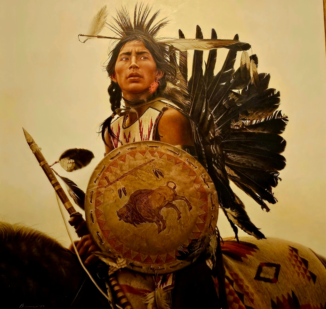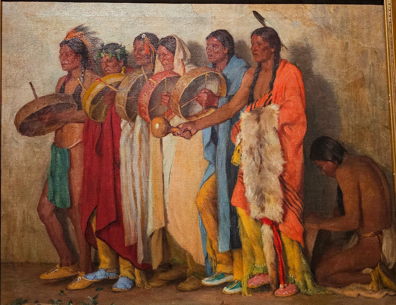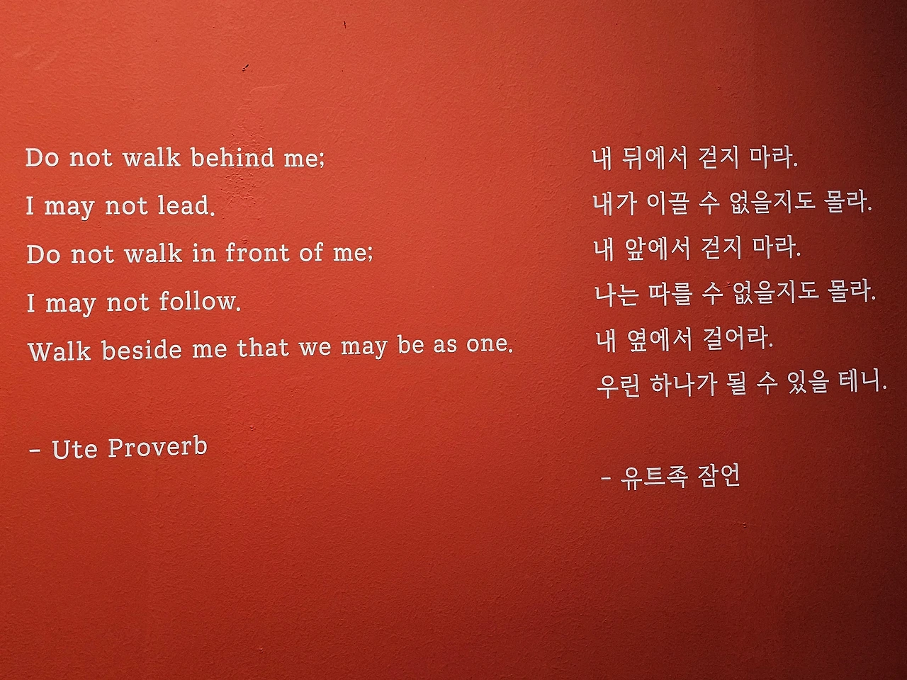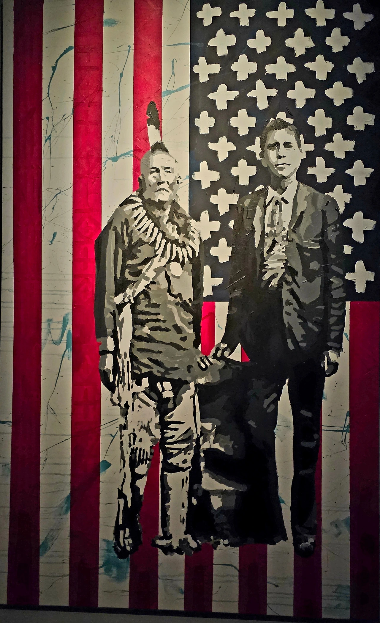 원주민 출신인 작가 그레그 딜은 미국 국기를 배경으로 원주민 복장을 한 남자와 양복을 입은 남자를 그렸다. 그는 <신원을 알 수 없는 백인과 함께 있는 원주민 남자>라는 제목의 역사적 사진을 참조했는데, 성조기의 별무늬는 작가가 속한 부족의 바구니 무늬로 바꿔 표현했다.