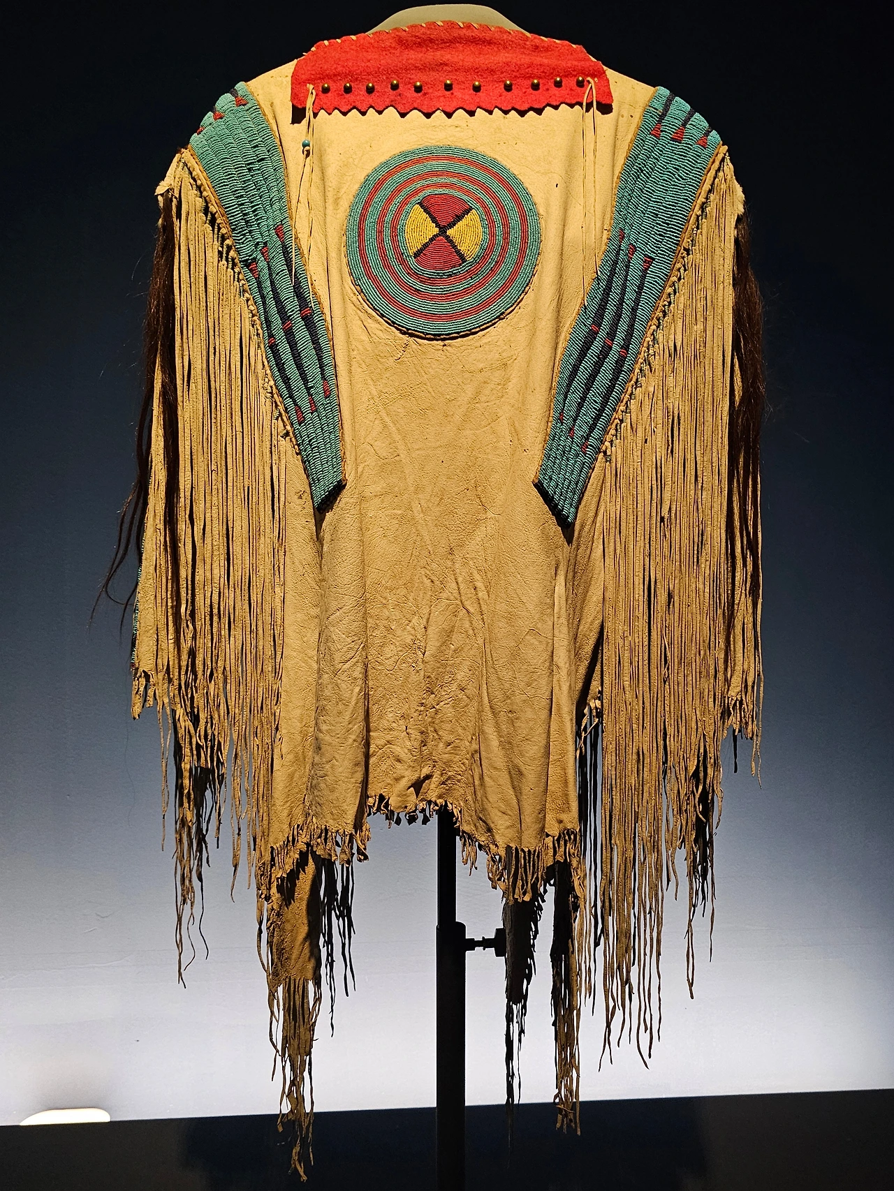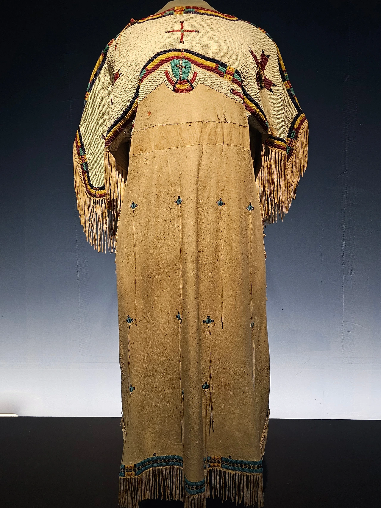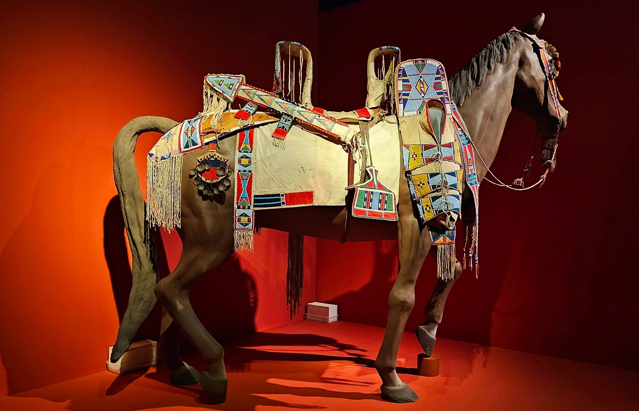 대평원의 라코타족 등을 포함하는 수족은 옷을 만들 때 구슬로 장식한다. 1870년대에 만들어진 드레스 윗부분은 구슬로 장식되어 있다. 드레스의 등 부분에는 독수리 깃털, 청둥오리 깃털이 장식되어 있다.