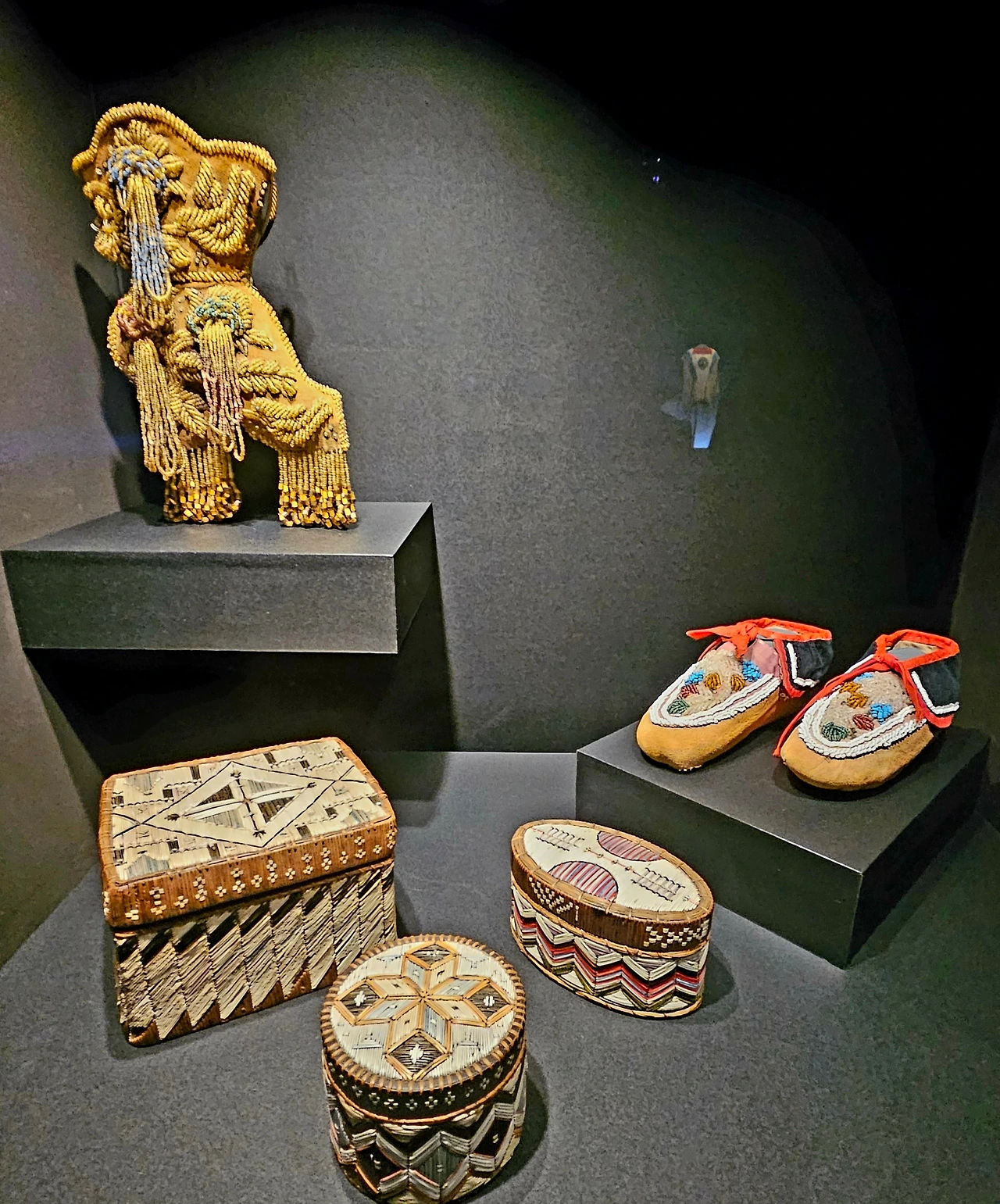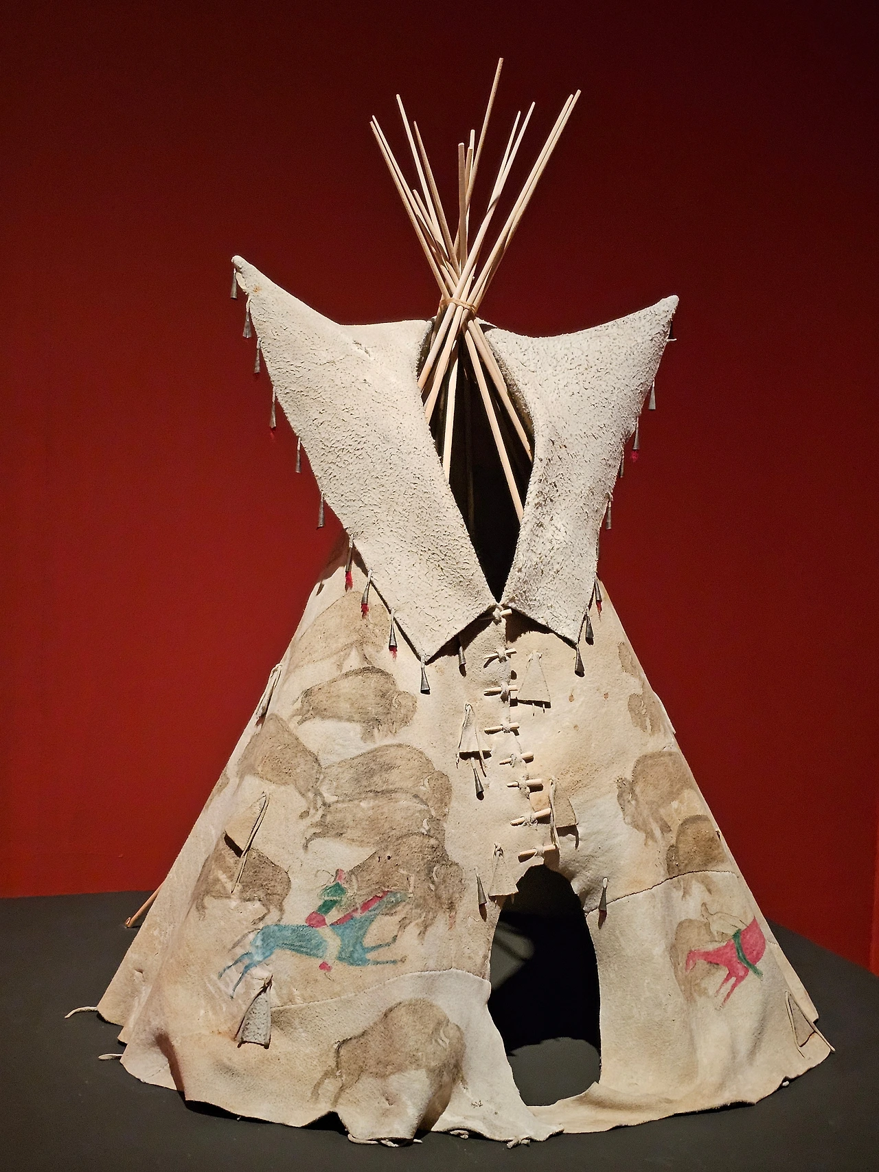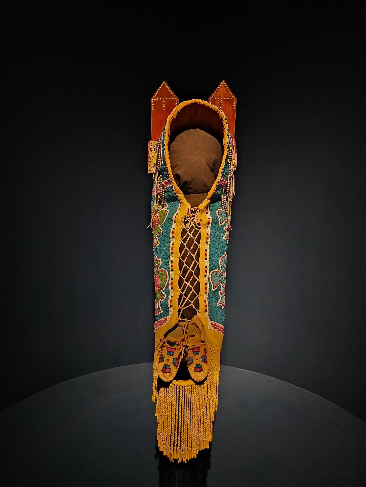 대평원의 라코타족 등을 포함하는 수족은 옷을 만들 때 구슬로 장식한다. 1870년대에 만들어진 드레스 윗부분은 구슬로 장식되어 있다. 드레스의 등 부분에는 독수리 깃털, 청둥오리 깃털이 장식되어 있다.