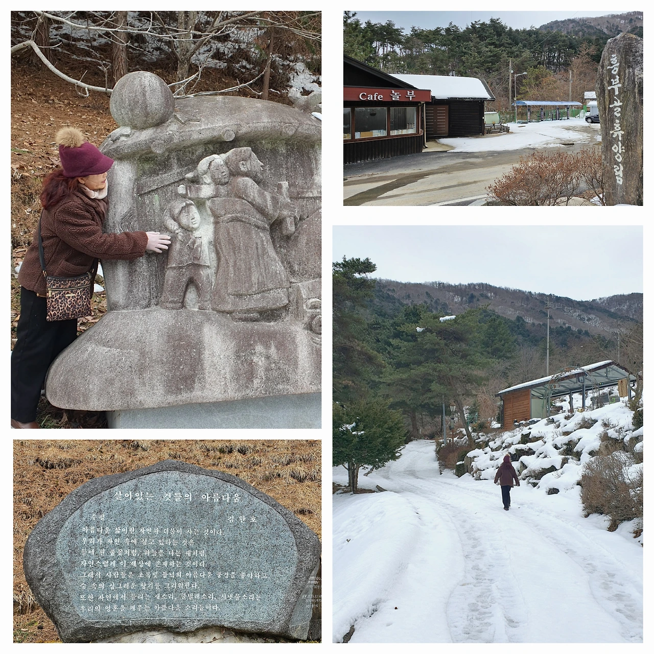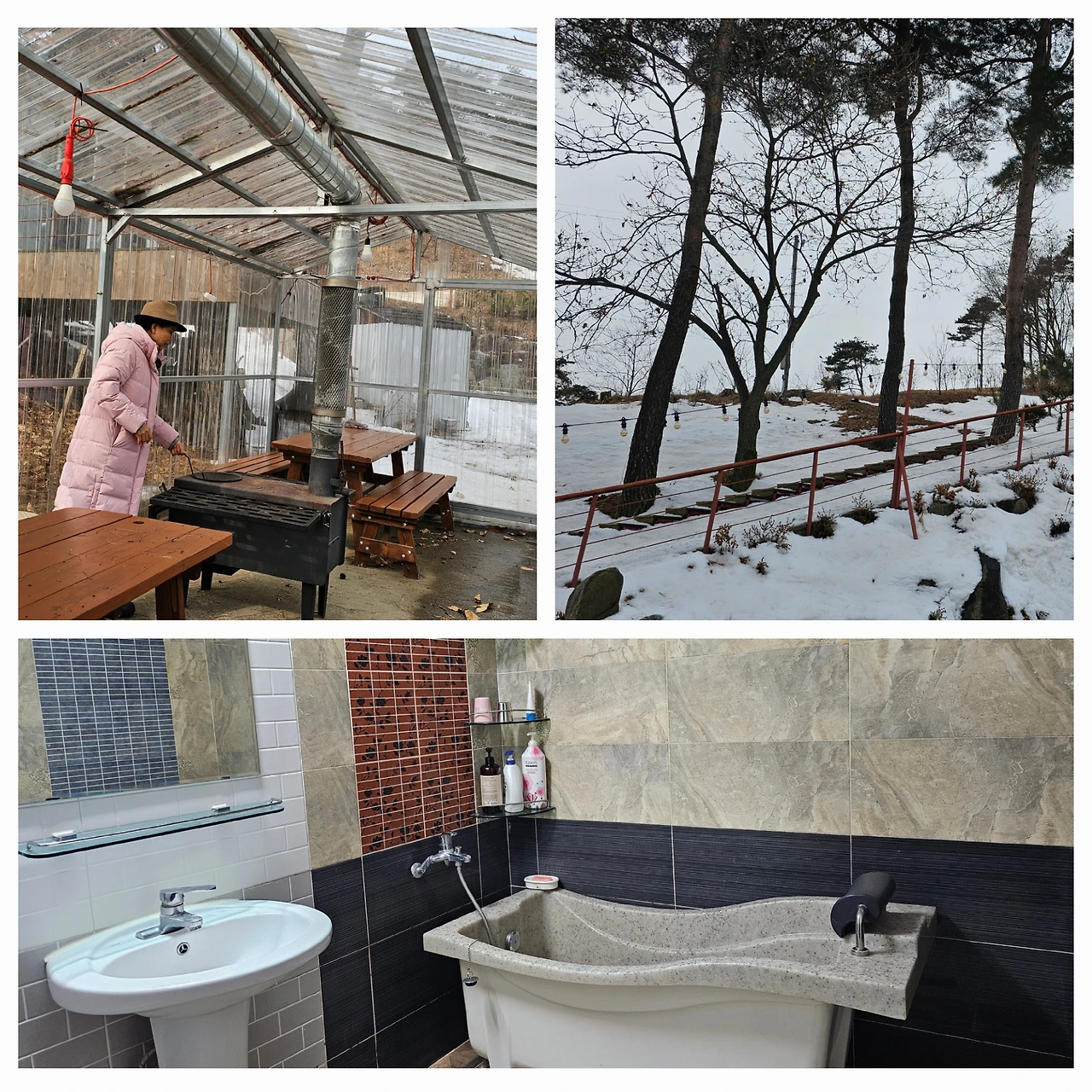 트레킹을 원하면 펜션뒤로 산책로도 있어 달리 이동할 필요가 없다. 지금 2월 한 달만 소강상태고 1월 명절 연휴 때도 방마다 매진이었다며 비싸지도 않은 숙박료에 고소득이라고 하신다. 10년 전에 산을 사 둔 남편이 펜션 5동 건물을 지었고 본인이 주로 관리하면서 주중엔 읍내에 강의까지 나가신다니 대단하게 여겨졌다.