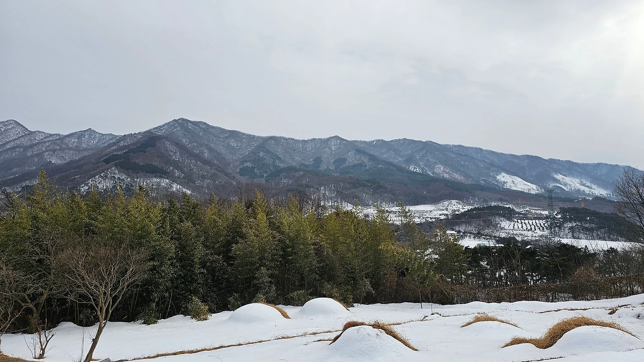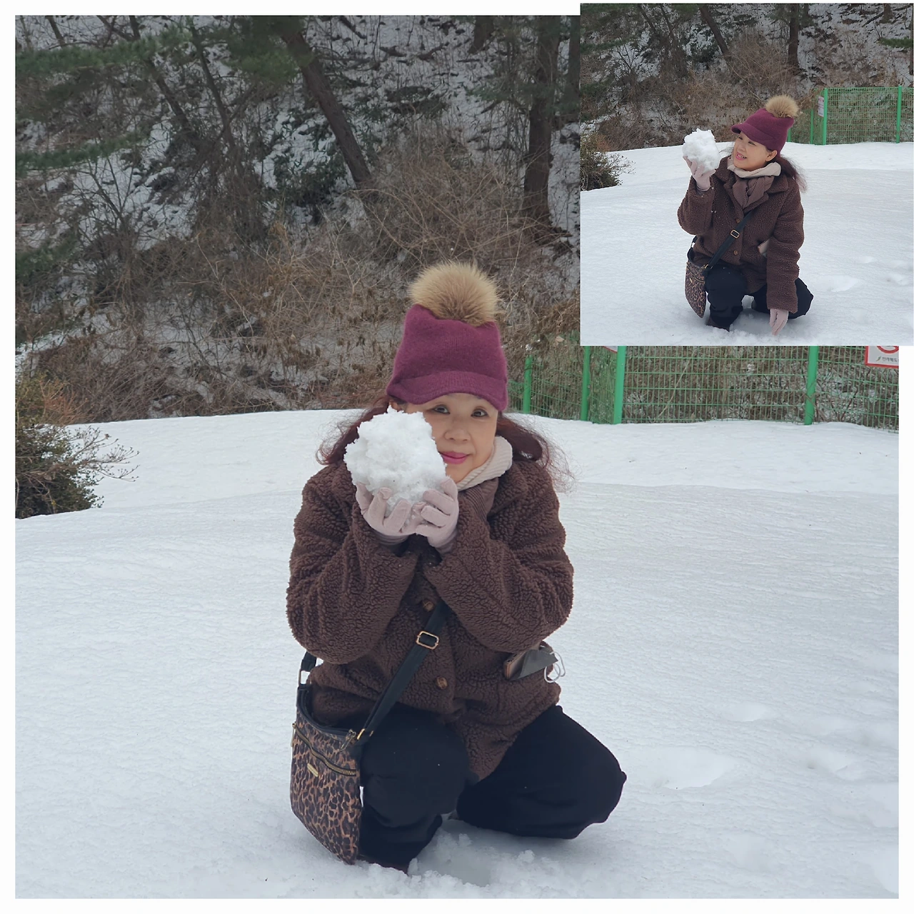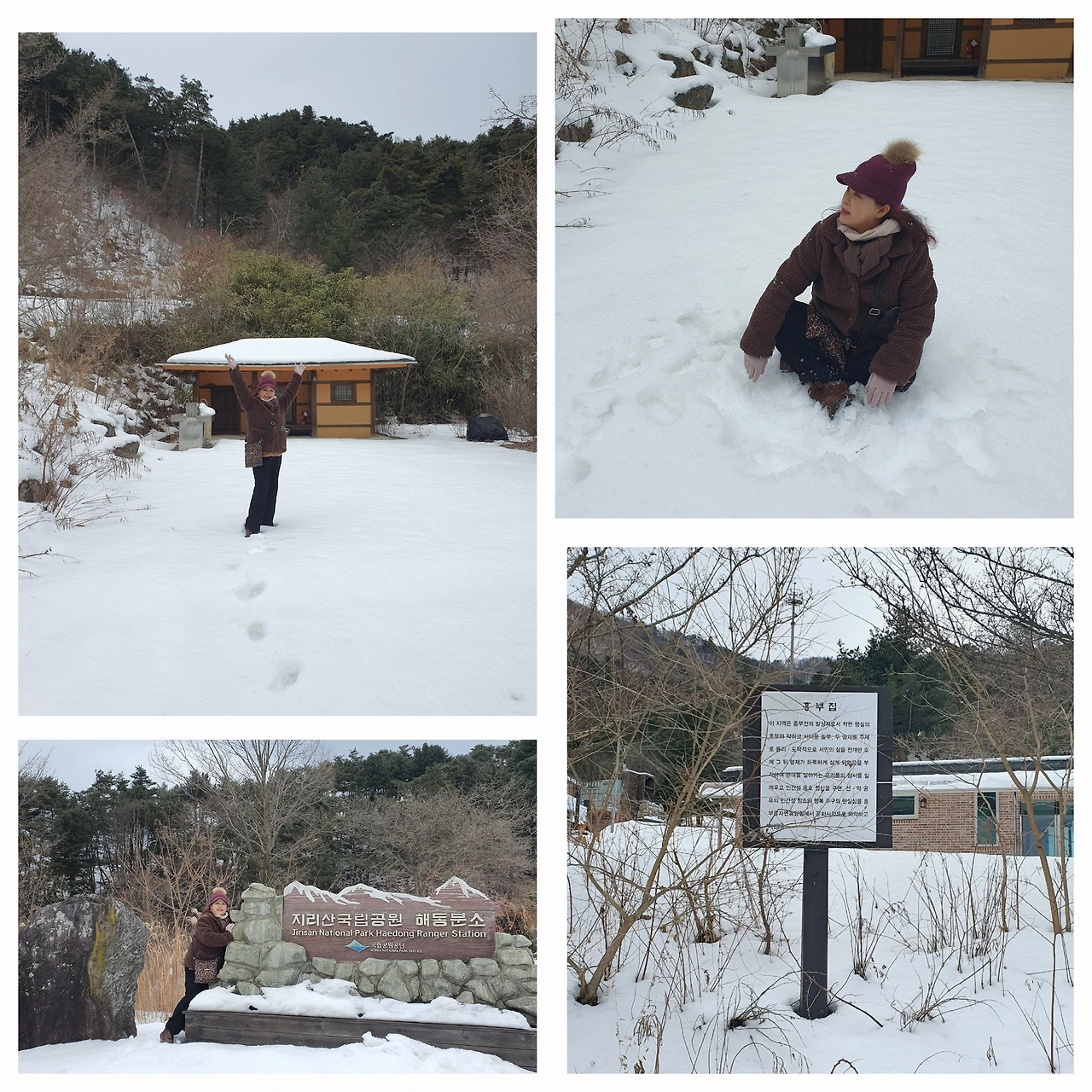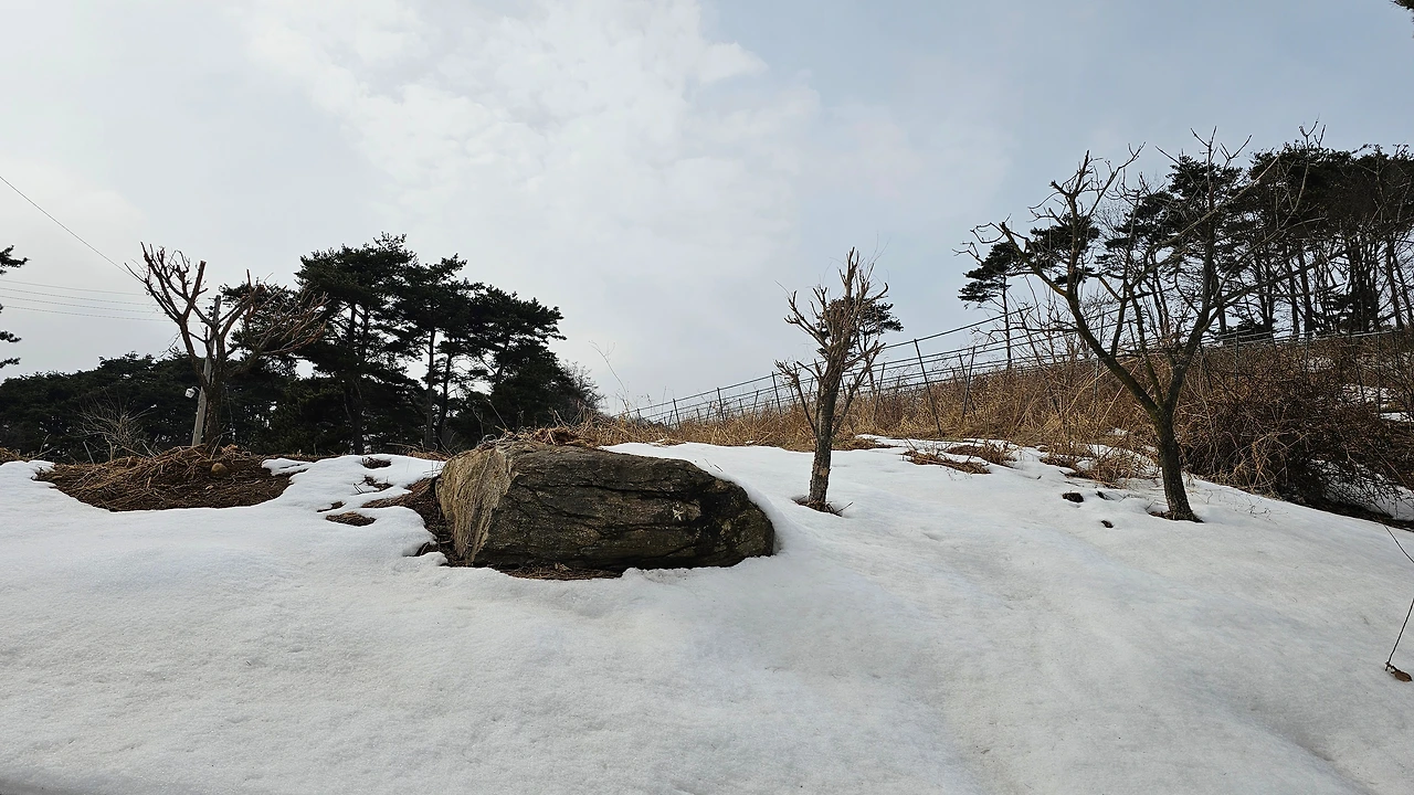 눈 구경하러 강원도 까지 갈 필요도 없이 그냥 우리 동네에서 눈구경을 실컷 하니 좋았다. 눈 발자국소리 들으며 걷고 눈밭 위에 앉아도 차갑지도 않고 공기는 더할 나위 없이 상쾌하다. 우리가 간 오후 내내 등산객 한 사람만 보았고 관리 사무소도 텅 비어있었다.
