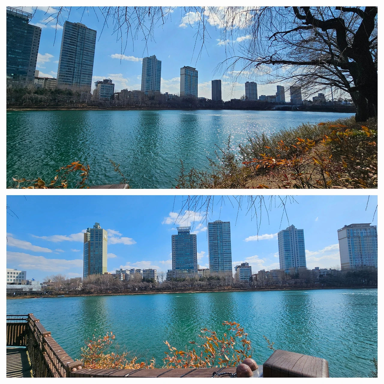 겨울 동안은 움직이는 동선이 자연 줄어드니 stay fit 하기 위해서 다이어트도 하고 일부러 운동을 해야 한다. 남편과 아들, 나 셋은 점심을 맛있게 먹고 산을 넘어 신정호수에 가서 커피를 마셨다.