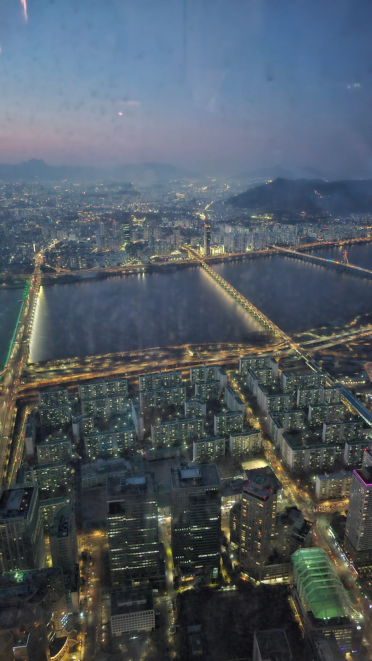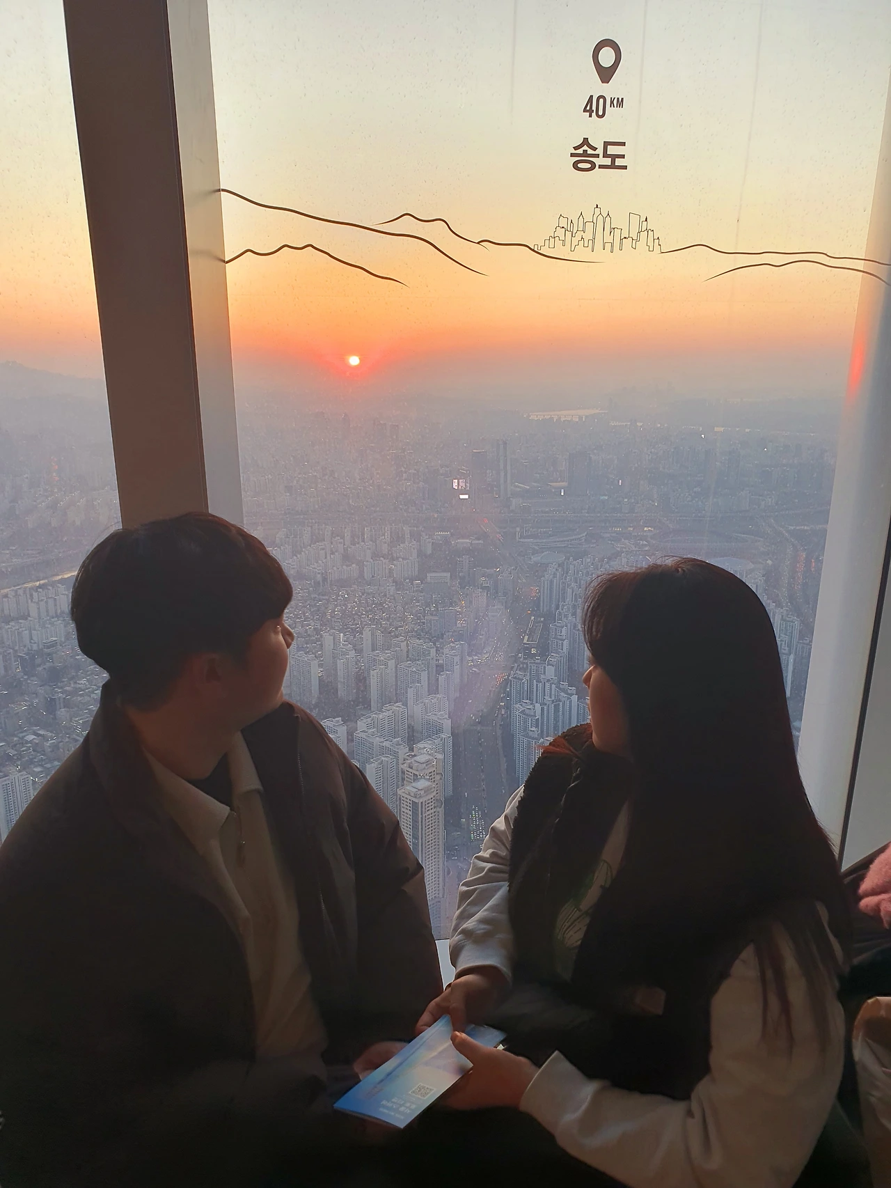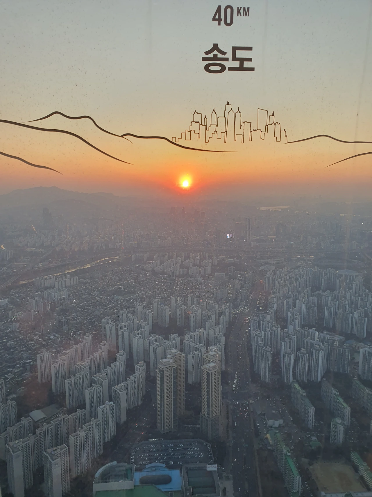암튼 아찔한 발 밑 건물, 도로, 강 풍경을 보며 사진을 찍고 좀 기다리니 금세 노을이 지기 시작했다.