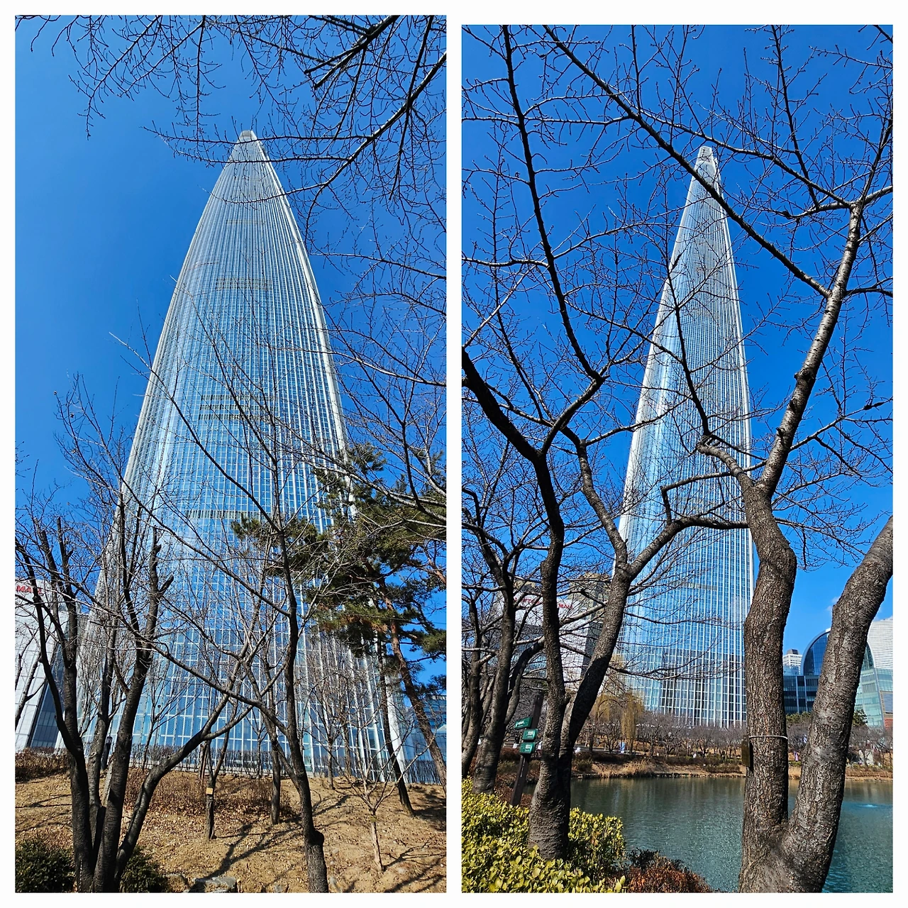 난방이 잘 되고 널찍한 투룸 게스트 하우스에서 큰 아들과 우리 셋은 편히 잘 잤다. 그리고 이튿날 석촌호수를 갔는데 전날 롯데 타워에서 보던 바로 그 호수였다.