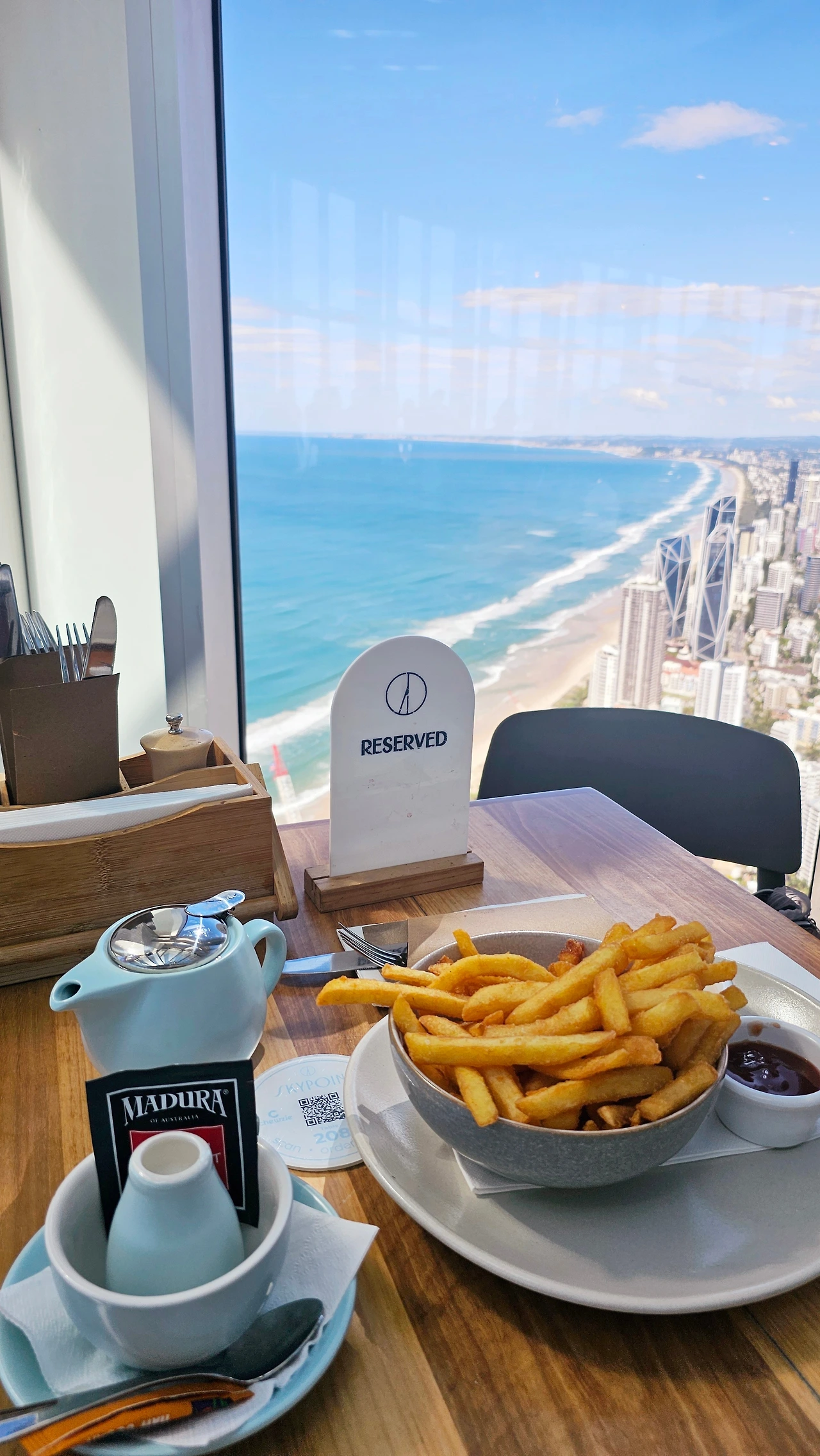 골드코스트의 유명한 비치들, 전망대에서 감자튀김과 차를 시켰는데 다 못 먹을 양이었다