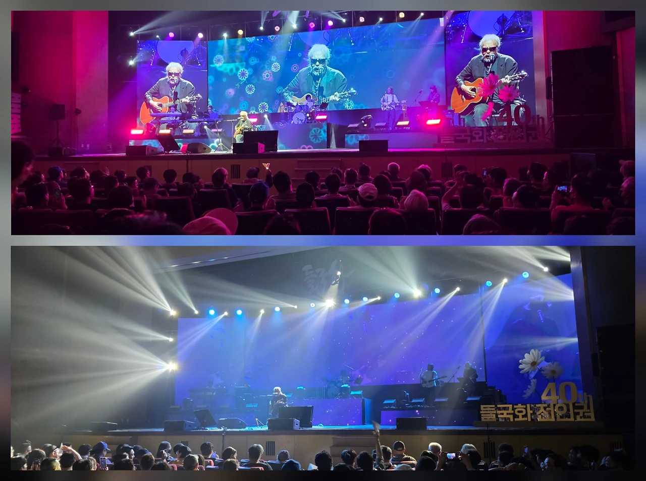 공연을 보러 온 사람들도 대부분 5~60 대가절반 이상이었다. 옆자리 아줌마 두 분은 노래를 따라 부르며 눈물까지 흘리는 걸 보며 들국화 골수팬인가 싶었다. 누군가와 같은 시대를 살며 시대적 감성, 감정을 공유한다는 것도 중요하긴 하다. 아들은 30대지만 서태지와 들국화 등을 좋아하니 조숙한 편이고 우리나라에서 적어도 50~70대는 신중현 김창완 김광석 김현식등과 함께 들국화를 기억할 것이다.