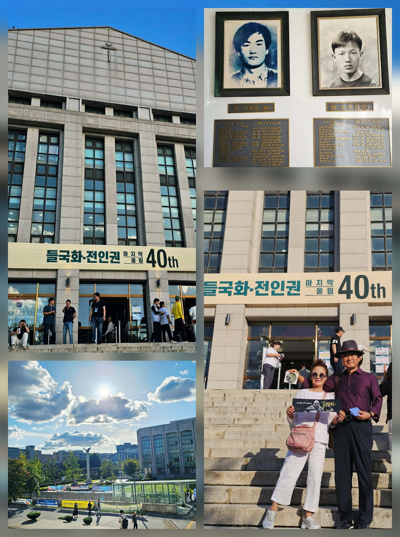 연세대 독수리동상과 학생회관 입구에 민주화 운동을 위해 애쓰다 먼저 간 친구들 조각이 눈길을 끈다.