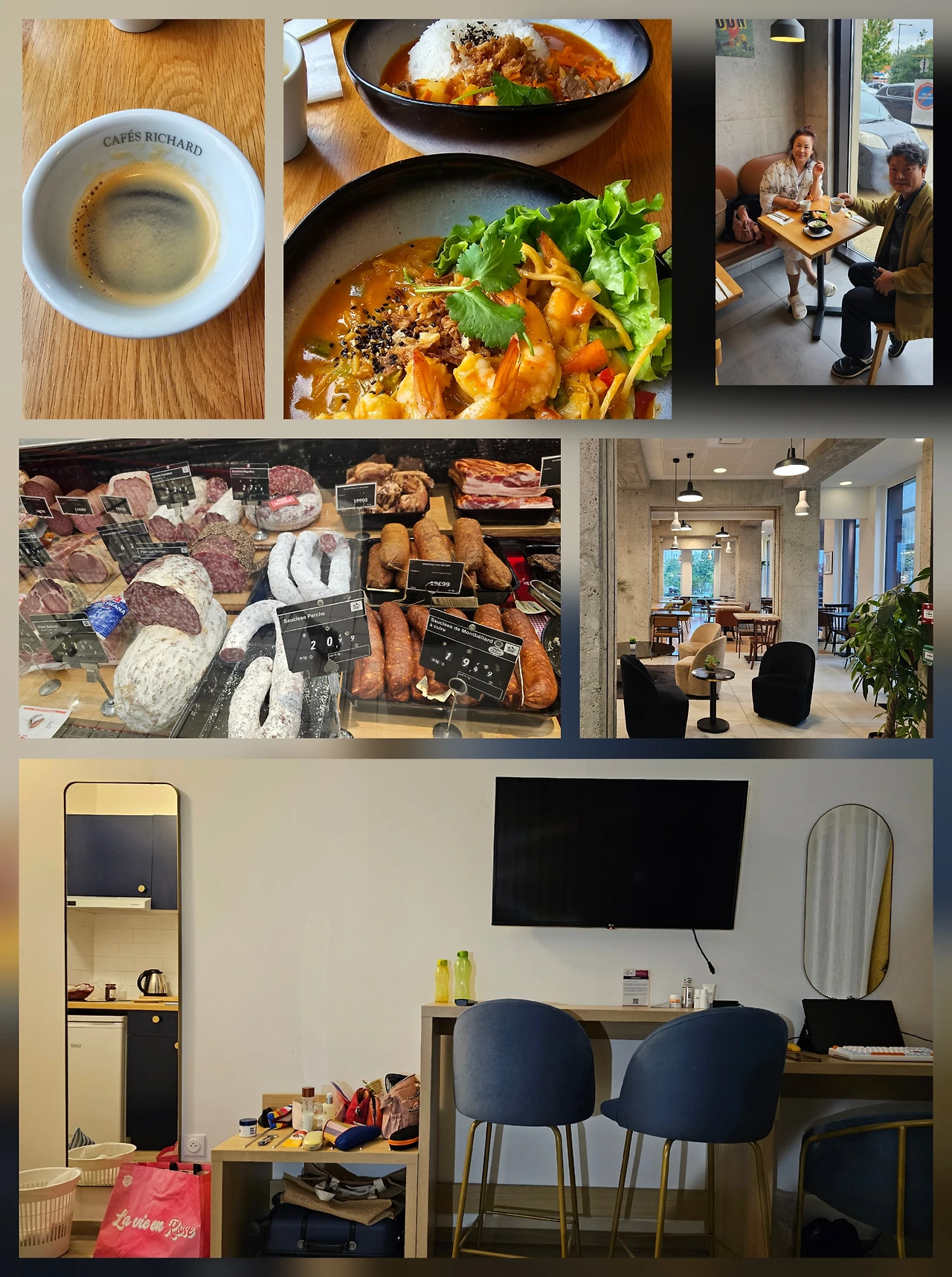숙소옆 빵집에서 맛있는 바게트와 프랑스 빵을 사들고 들어왔다. 먹을 것을 한가득 사고 왔는데도 식욕은 없고 비 오는 날씨 따뜻한 물로 샤워를 하고 여독과 시차도 있어서 첫날은 그냥 푹 쉬기로 했다.