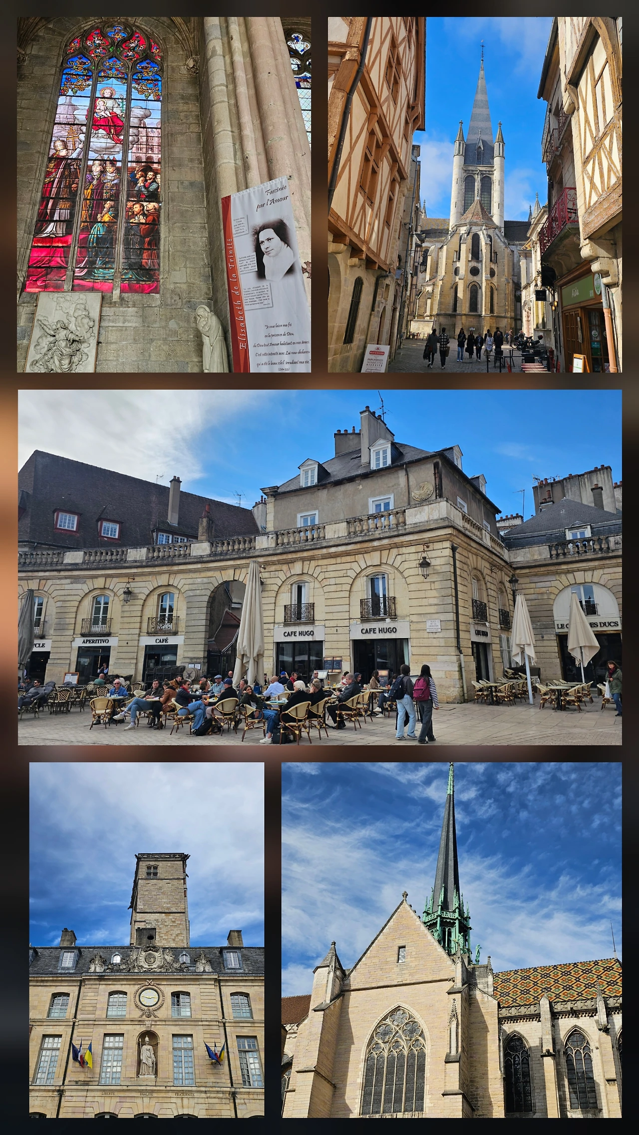 디종 생 메쉘 교회와 수녀의 신앙간증, 그리고 부르고뉴 공작 궁전 앞 위고 카페등 디종은 최소 이틀은 머물며 자세히 볼 만한 아름다운 도시다. 오른쪽 하단의 지붕에 대해 자세한 설명이 있는데 생략하기로 한다.