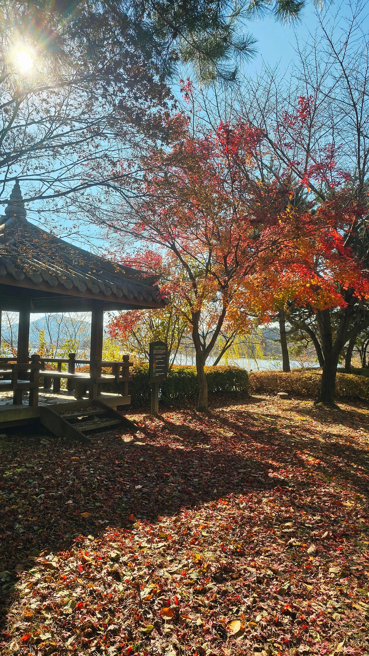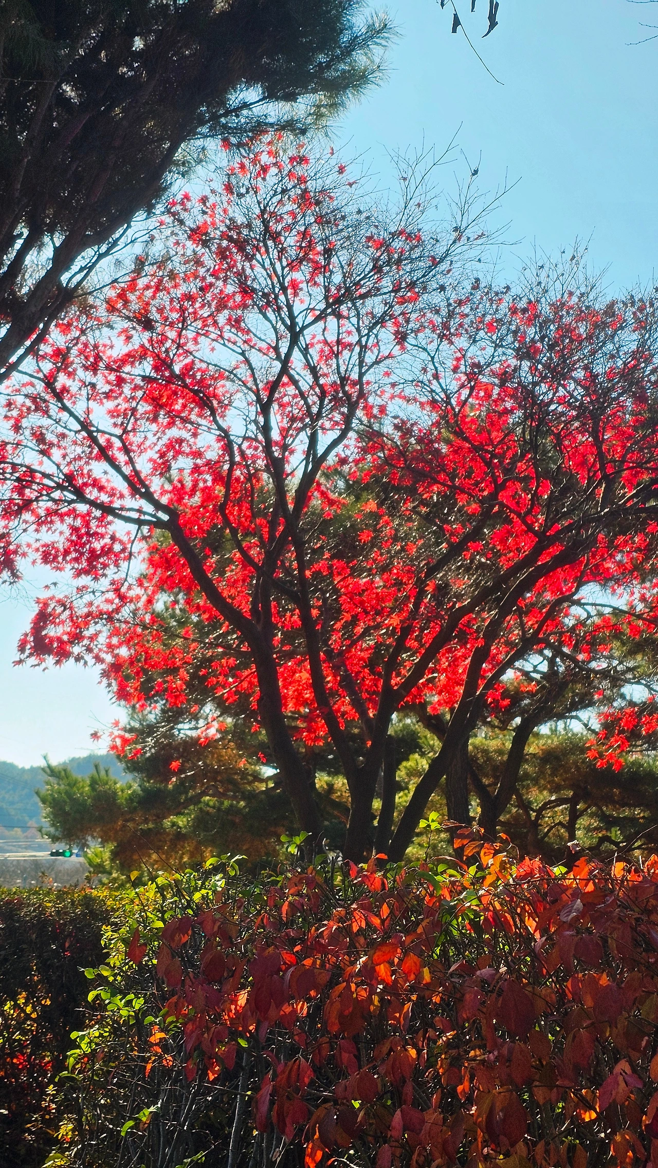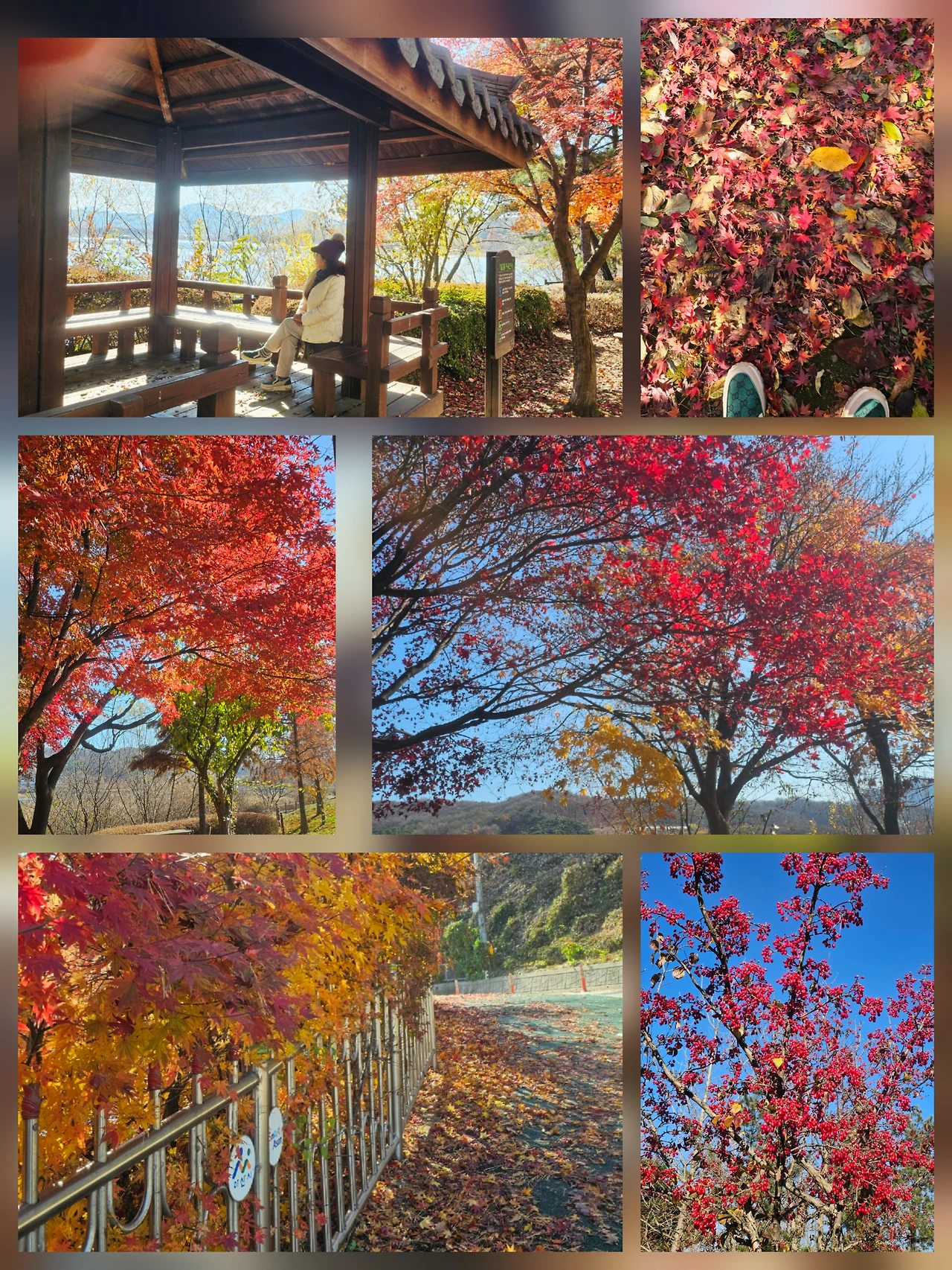 먹고 호수 한 바퀴를 하는데 단풍이 마지막 열정의 자태를 뽐낸다. 특히 산수유 빨간 열매가 탐스럽게 빼곡히 달려있어 어릴 적 추억을 생각하며 몇 개 따 먹어보았다. 새콤한 미각이 나를 어느새 어린시절로 데려다 준다.