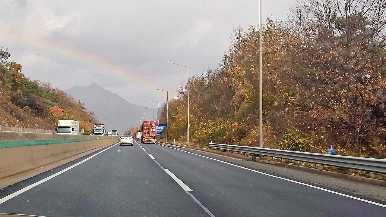 운전하던 남편이 무지개가 떴다~!기에 사진에 담았다.