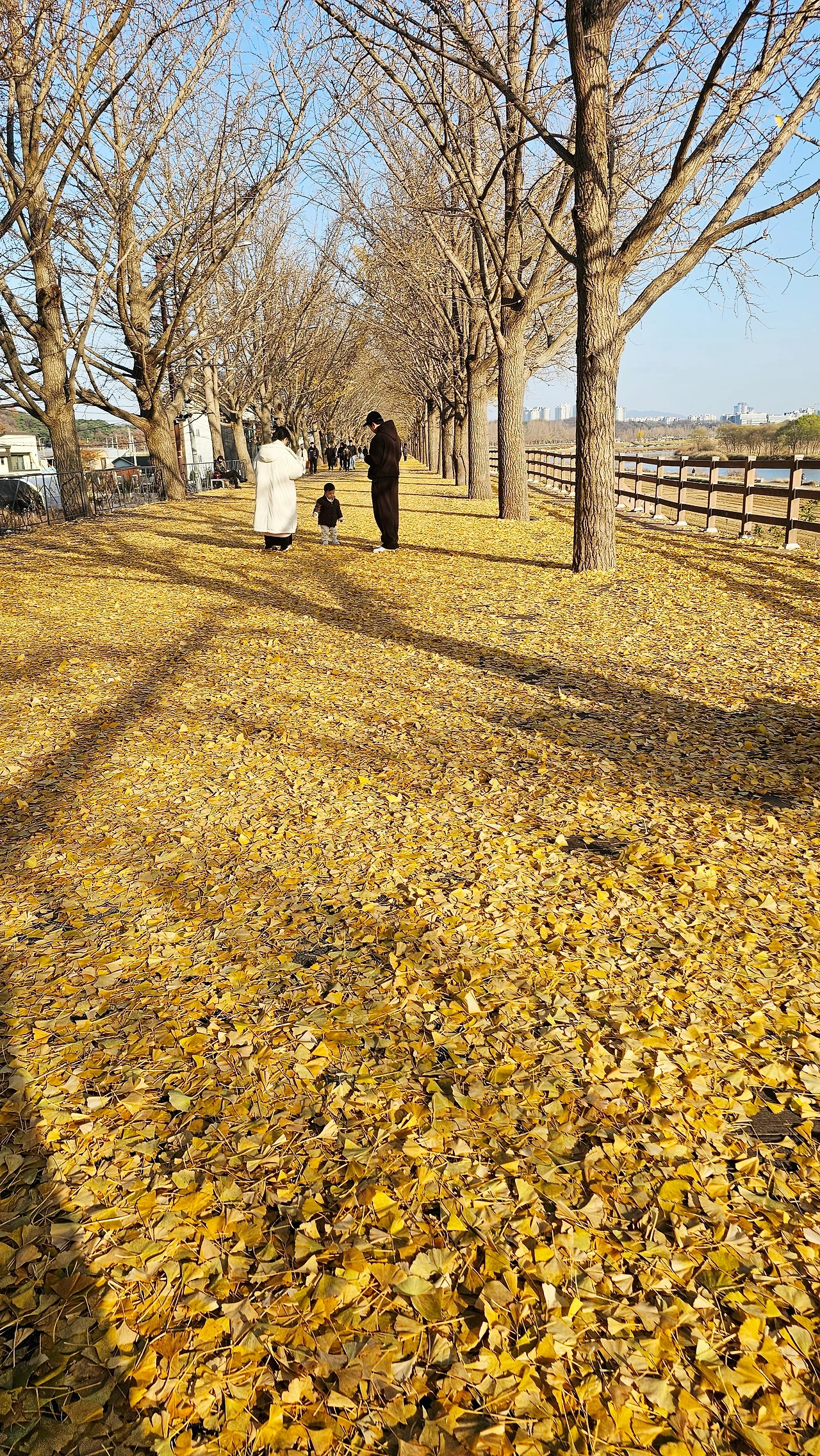 아산 곡교촌은 은행나무길로 유명하다. 작년처럼 눈부신 풍경은 아니었지만, 바닥에 깔린 은행잎과 나목 사이로 걷는 마음은 즐거웠다.
