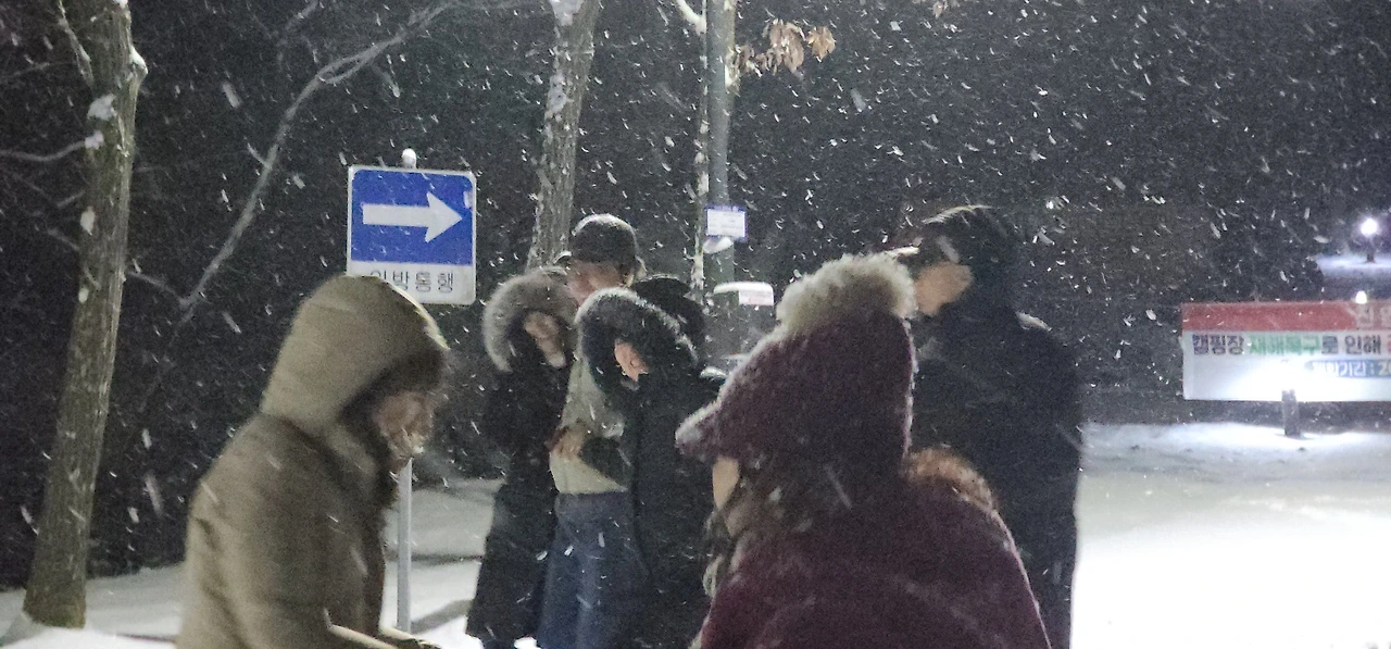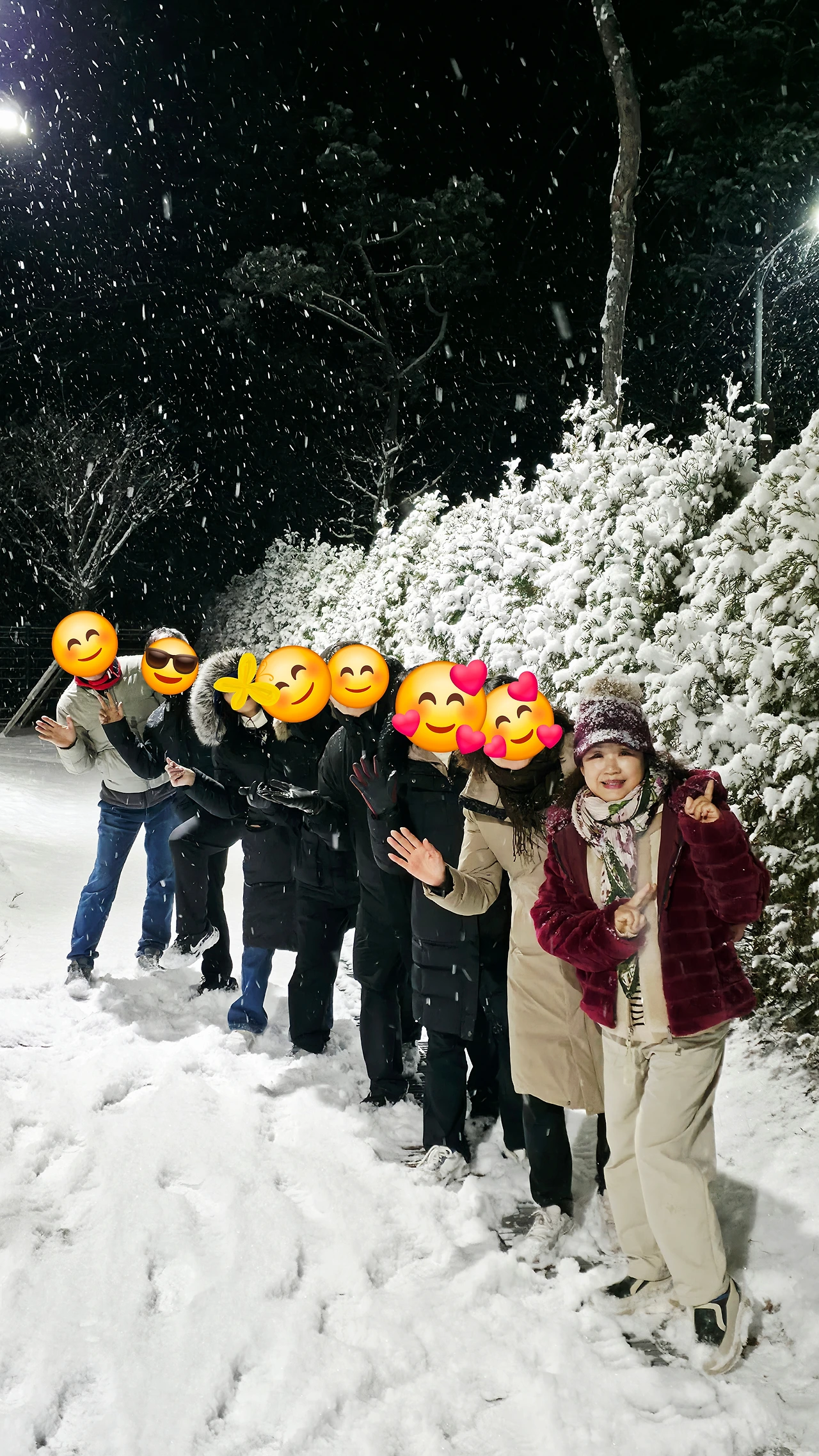 눈이 오면 강아지만 즐거우란 법이 있냐? 환갑 넘은 우리도 즐겁긴 마찬가지다. 이제는 설레며 만날 사람이 따로 있는 것도 아니고, 전화를 꼭 해야 할 대상도 없지만 다들 들뜨며 좋긴 마찬가지다. 게다가 눈 보기 힘든 경상도 사람들이 충청도에 와서 맞이하는 첫 눈이라니!!
