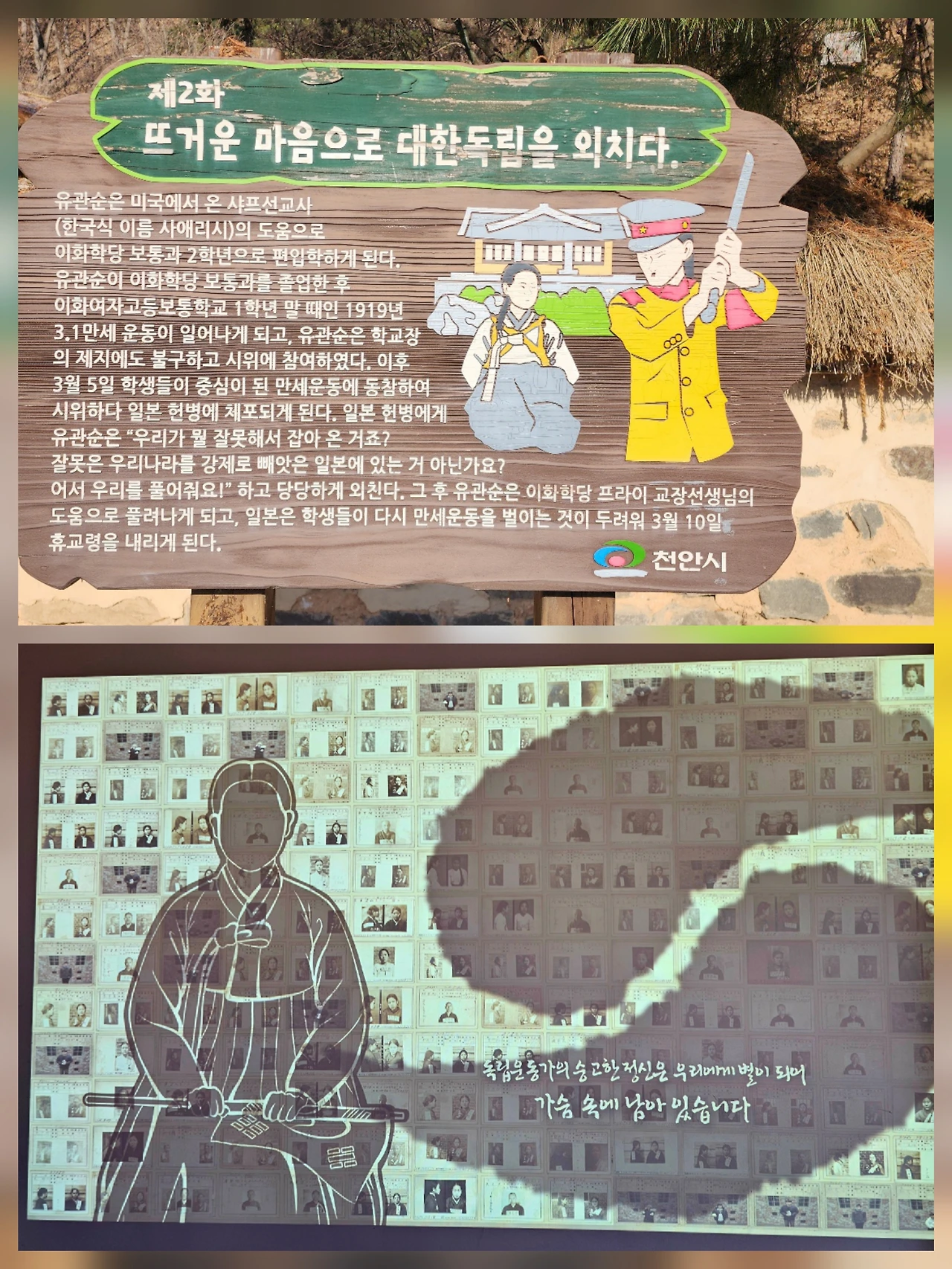 유관순 생가 옆 매봉 교회에도 그 시대적 배경과 상황, 그리고 가족, 주변 지인들에 관한 이야기가 잘 소개되어 있었다. 그리고 그리 멀지 않은 기념관에서 일본 법정에서 호통치던 유관순 열사의 동영상이 있어 감명 깊게 보았다.