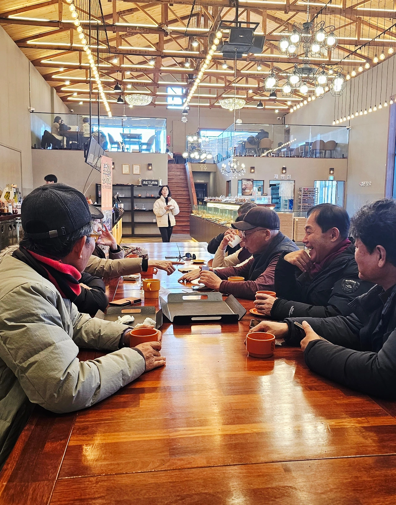 점심으로 생선구이집에서 한 사람당 고등어, 갈치, 삼치, 임연수 중 골라서 큰 거 한 마리씩, 배부르게 먹으며 그간 안부를 묻고 회포를 풀었다. 서울에서 직접 운전해서 달려와 주신 회장님 덕분에 무게가 실려 분위기도 전국구 모임 같다.