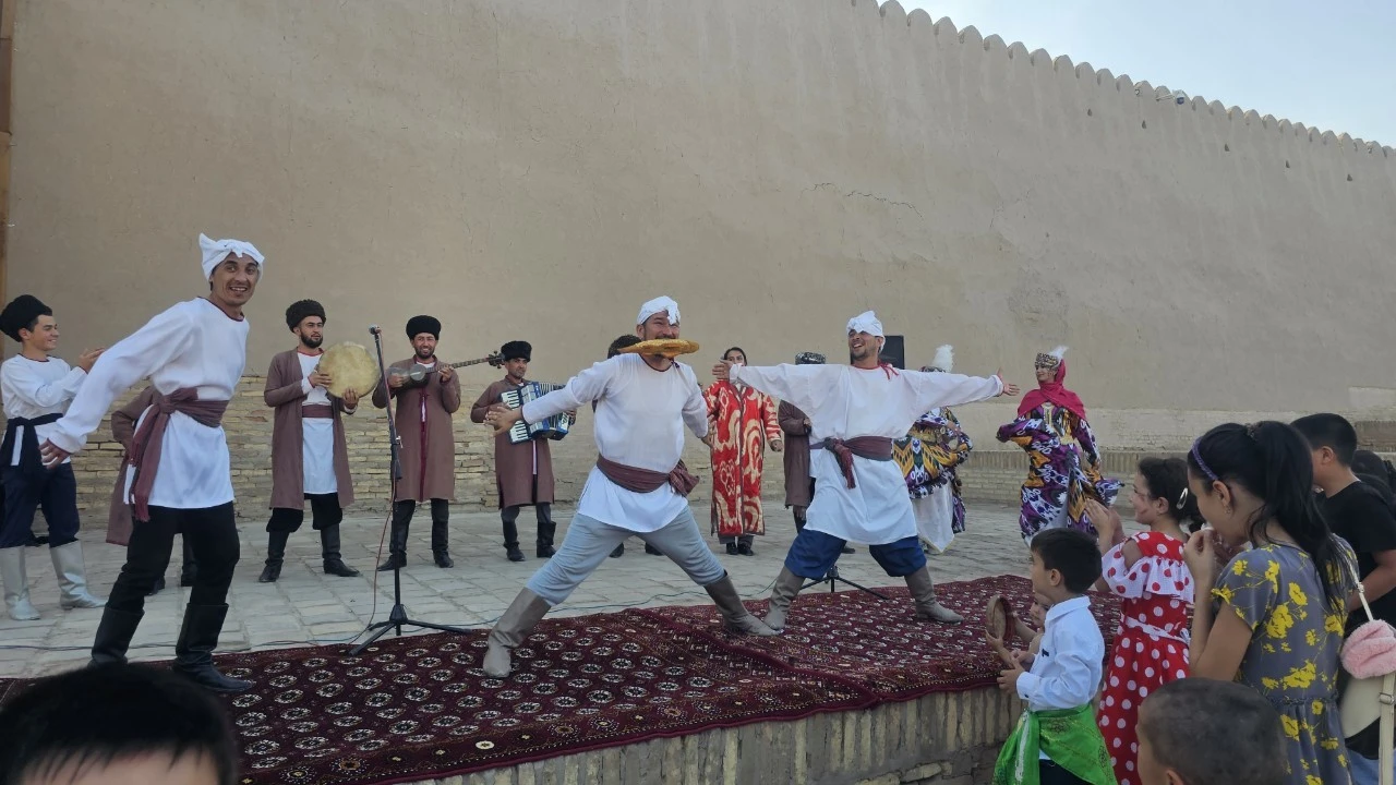 첫날 저녁 광장에 나가 익살스러운 공연도 보며 주변 레스토랑에서 굽는 샤슬릭냄새도 맡으며 걸어 다니니 다시 한번 내가 천년의 고도 실크도시를 탐방하고 있음을 실감한다.