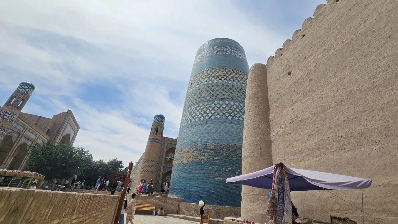 히바의 랜드마크인 푸른색 원통형의 칼타 미노르 미나렛은 1852년 착공했는데 3년 후 미완성인 채로 공사가 중단됐다. 하지만 그 모습 자체로도 아름다워 사람들의 눈길을 끌고 있고 주변 건물들이 모두 함께 연결된 동선이라 돌아보기엔 편했다.
