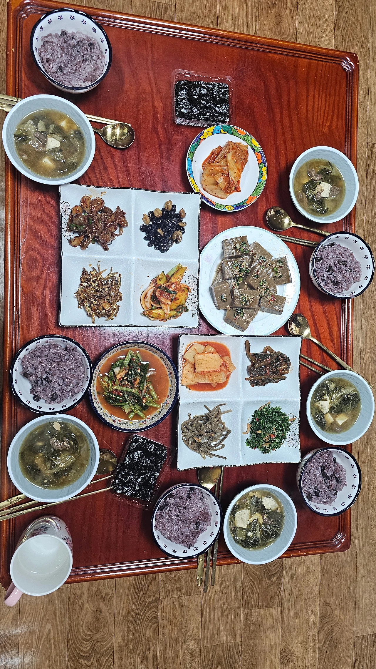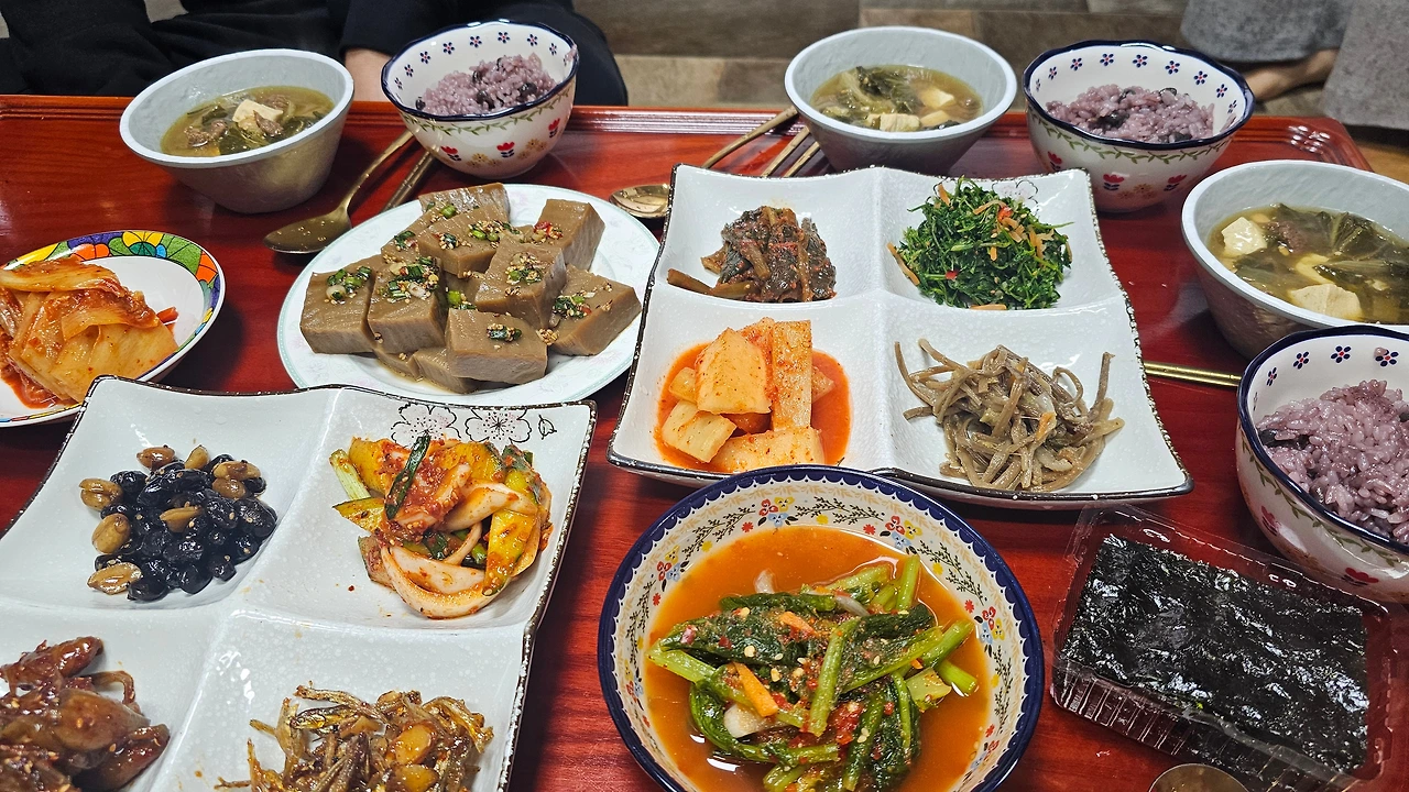 전날 친정 식구랑 친구 온다고 도토리묵까지 만들어놓고 이거 저거 꺼내오는 반찬들이 다 맛깔스럽다.