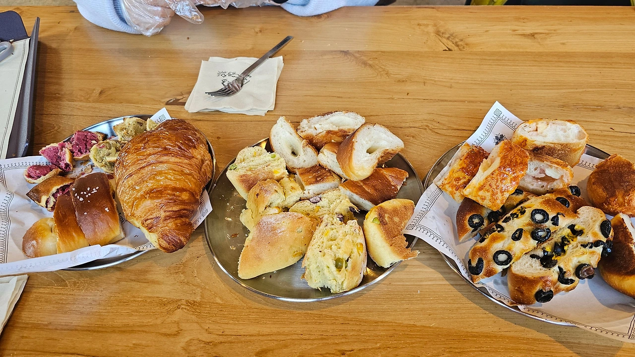 전날 저녁부터 아침까지 많이 먹은 탓에 점심은 거르고 그냥 베이커리 카페에 가서 빵을 한가득 담아와서 커피랑 마셨다.
