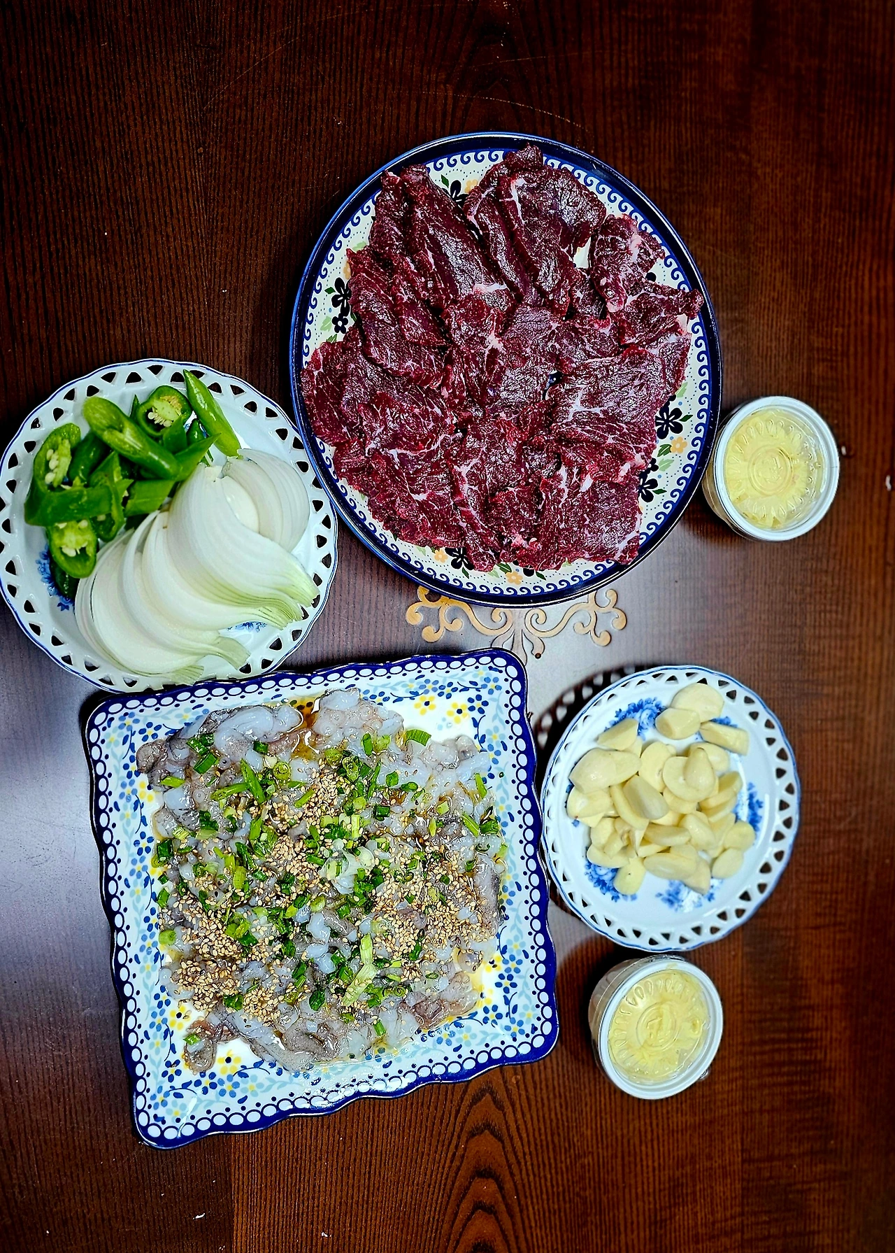 친구가 살아있는 무안낙지를 쪼사서 통깨 살살 뿌려 내놓았다. 저런 접시로 대여섯개를 비웠다. 내 생전에 산 낙지를 제일 많이 먹은 날이다. 친구 남편말로는 기운 딸릴 때는 무조건 산낙지가 최고란다.