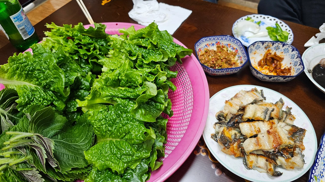 마지막에 장어를 구워주었다. 밥은 못 먹을 정도라 장어는 몇 점만 먹었고 이렇게 잘 먹는 것이 전라도식인가 싶었다.
