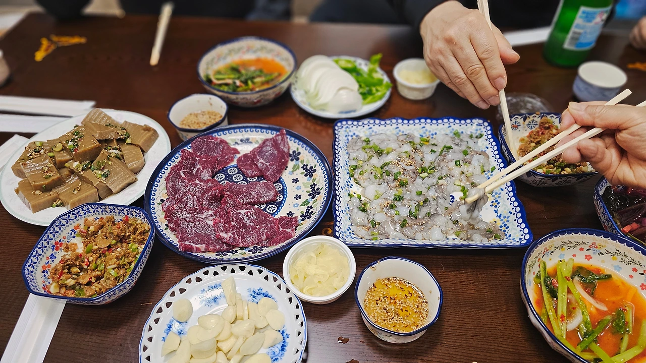 음식 먹거리는 역시 전라도라 기대하고 갔지만 야들야들 살아있는 무안낙지와 근처에서 잡은 그날 작업한 한우를 가져와서 생고기로 먹었는데 하나 비리지도 않고 기름장에 찍어먹으니 입에 녹았다.