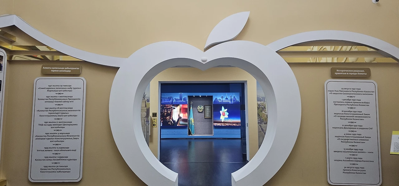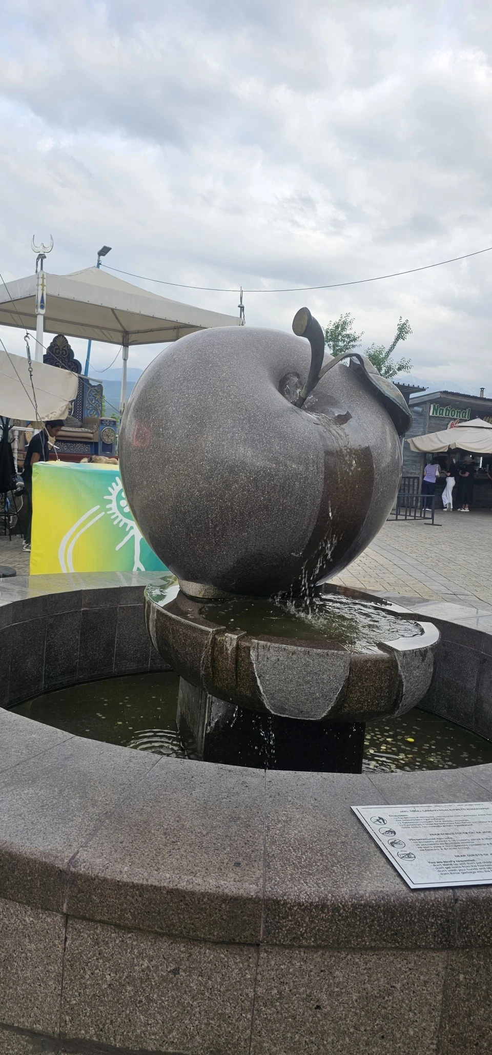 알마티란 말이 '사과의 머리'란 뜻으로 뉴욕처럼 상징이 애플이라 박물관 앞에도 사과모양으로 장식이 되어있다. 박물관을 둘러보고 판필로프 28 공원을 가 보았다. 녹색공원이 깊고도 넓다.