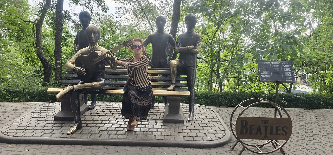 침블락에서 내려와서 콕토베 티브이 송신탑이 있는 곳으로 갔다. 알마티 뷰를 볼 수 있는 높은 곳이라 차를 타고 올라갔다가 내려올 때는 케이블카를 타고 내려왔다. 비틀스가 다녀갔는지 그의 동상이 있어 음악을 좋아하는 아들이 생각 나 사진을 찍어본다. 이곳도 알마티의 핫 플레이스로 꼽혀서 사람들이 많이 올라와서 도시 뷰도 즐기고 하는 곳이었다.