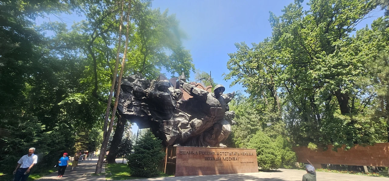 판필로프 공원에는 1941년 모스크바 외곽의 마을에서 나치의 탱크와 맞서 싸우다 숨진 알마티 보병대의 28명의 병사를 <판필로프 영웅들>이란 기념물로 기념하고 있다.