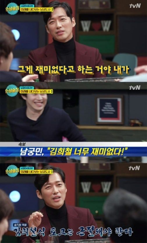 <인생술집>에 출연한 남궁민이 이 말투의 전형을 보여줬다. 조곤조곤하게, 언성을 높이지 않으면서도 다소 무례할 수 있었던 김희철 씨 발언의 문제점을 명확히 짚어내는 태도를 보여줬다.
