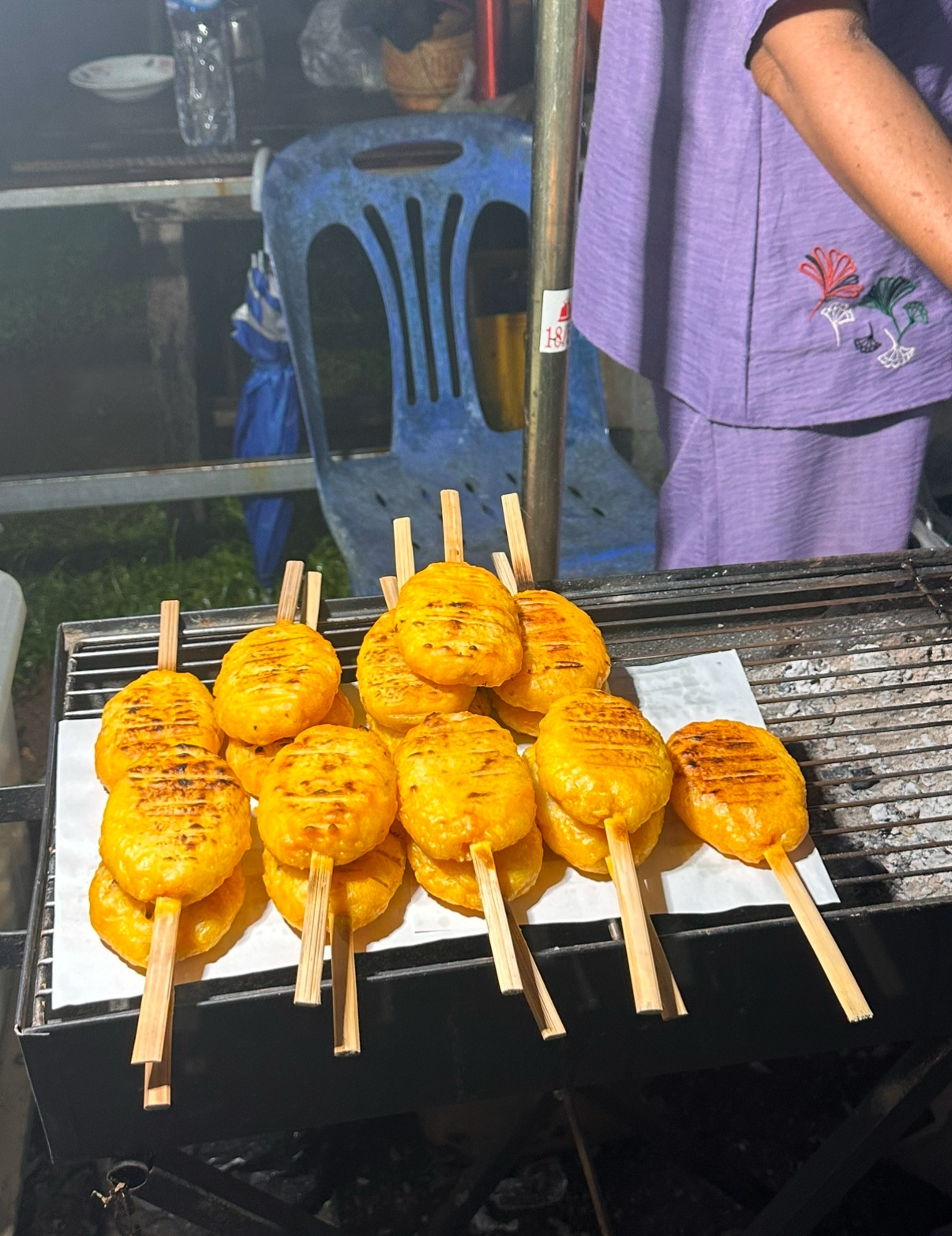 얼마 떨어져 있지 않은 곳에서 밥을 꼬치에 꽂아 구워주는 간식을 발견했다.