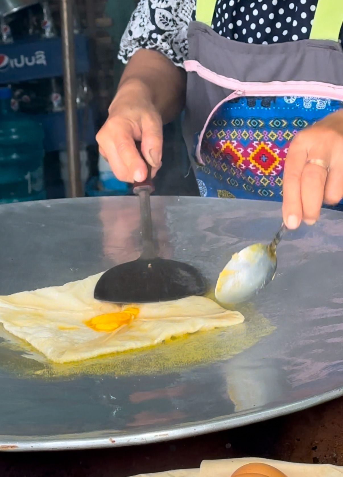 이번에는 도전할 음식은 로띠(Lotee)라는 것인데, 얇은 판케이크를 바삭하게 튀겨 누텔라와 바나나, 연유 등을 함께 먹는 디저트다.