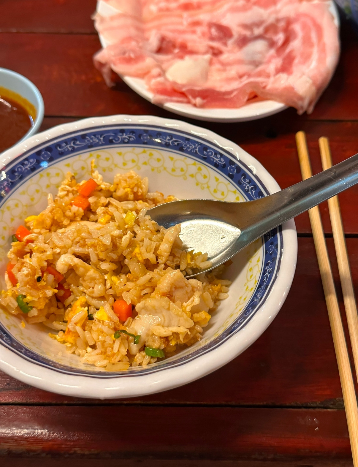 고기가 익는 동안 쌀국수와 볶음밥으로 허기를 채웠다.