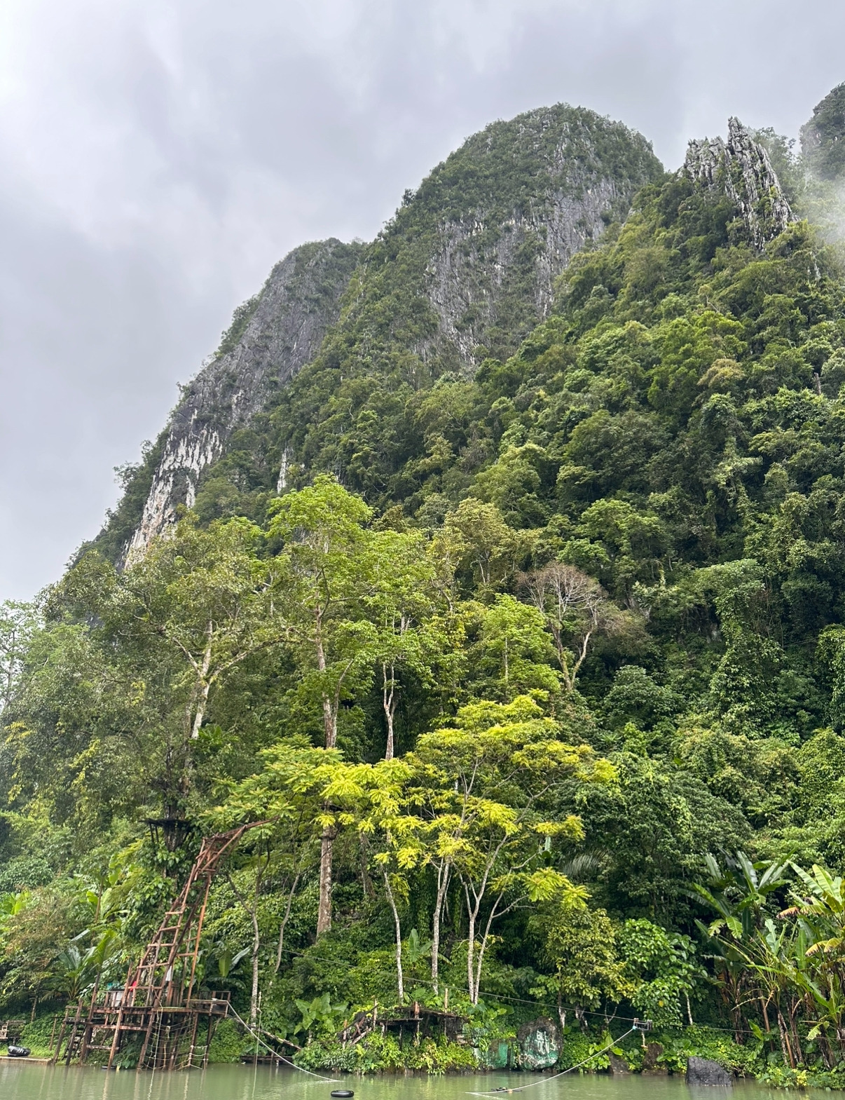 아름다운 바위산, 나무로 만든 건축물, 대롱대롱 매달려 있는 집라인 손잡이, 우리가 앉아있던 의자까지.