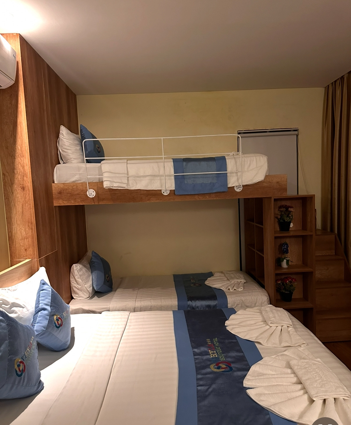 튼튼한 2층 침대와 넓은 침대.