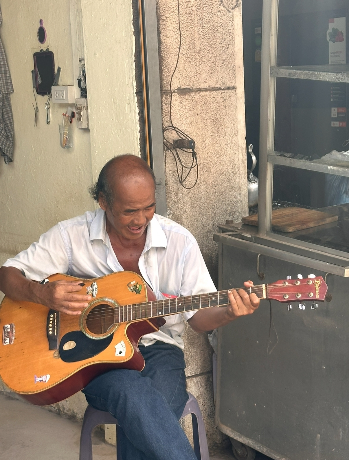 노인의 노래와 미소, 춤추듯 움직이는 손가락이 주변의 풍경과 어우러졌다.