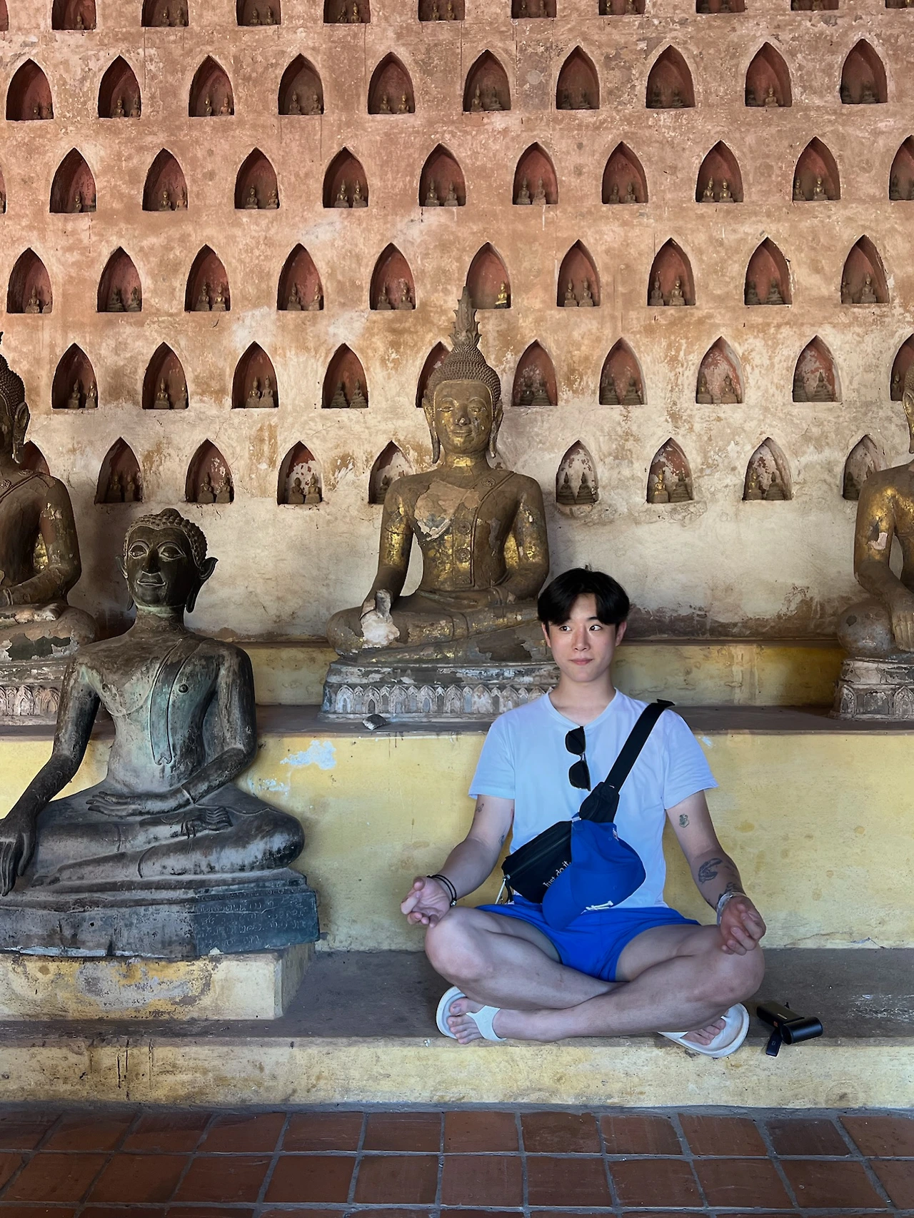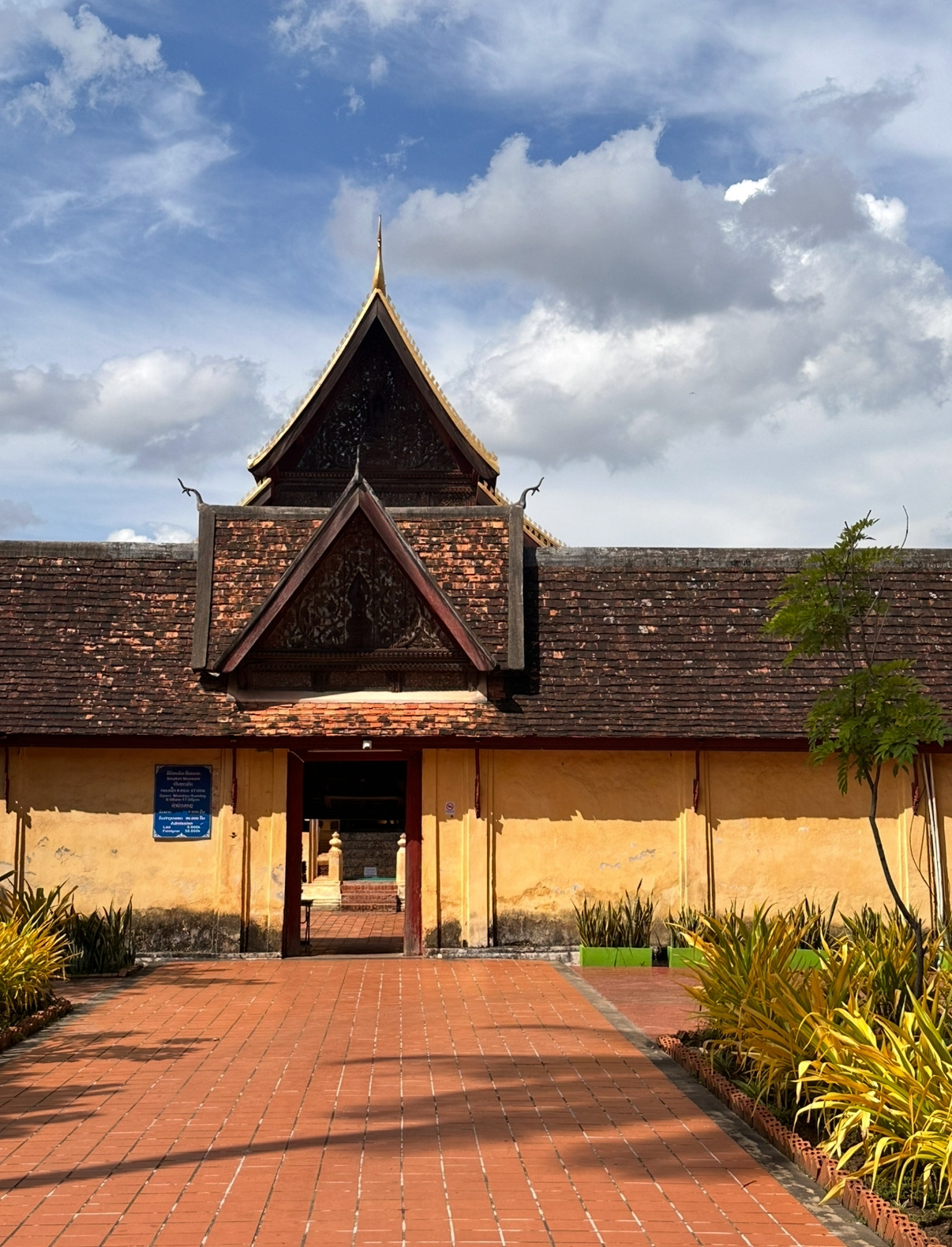 비엔티안의 맑은 하늘 아래, 사원은 마치 그곳에서 자라난 것처럼 자연스럽게 자리를 지키고 있었다.