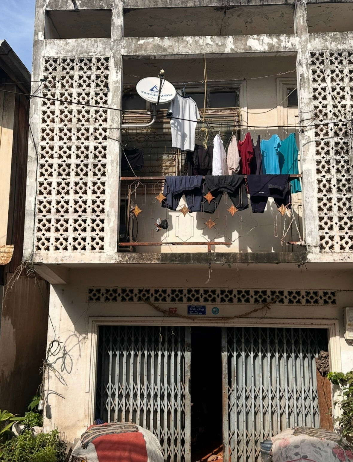 셔츠, 바지, 옷가지들, 색이 바랜 천 조각들. 햇볕에 마르며 바람에 흔들리는 모습이 마치 시간을 천천히 말리는 듯 보였다.