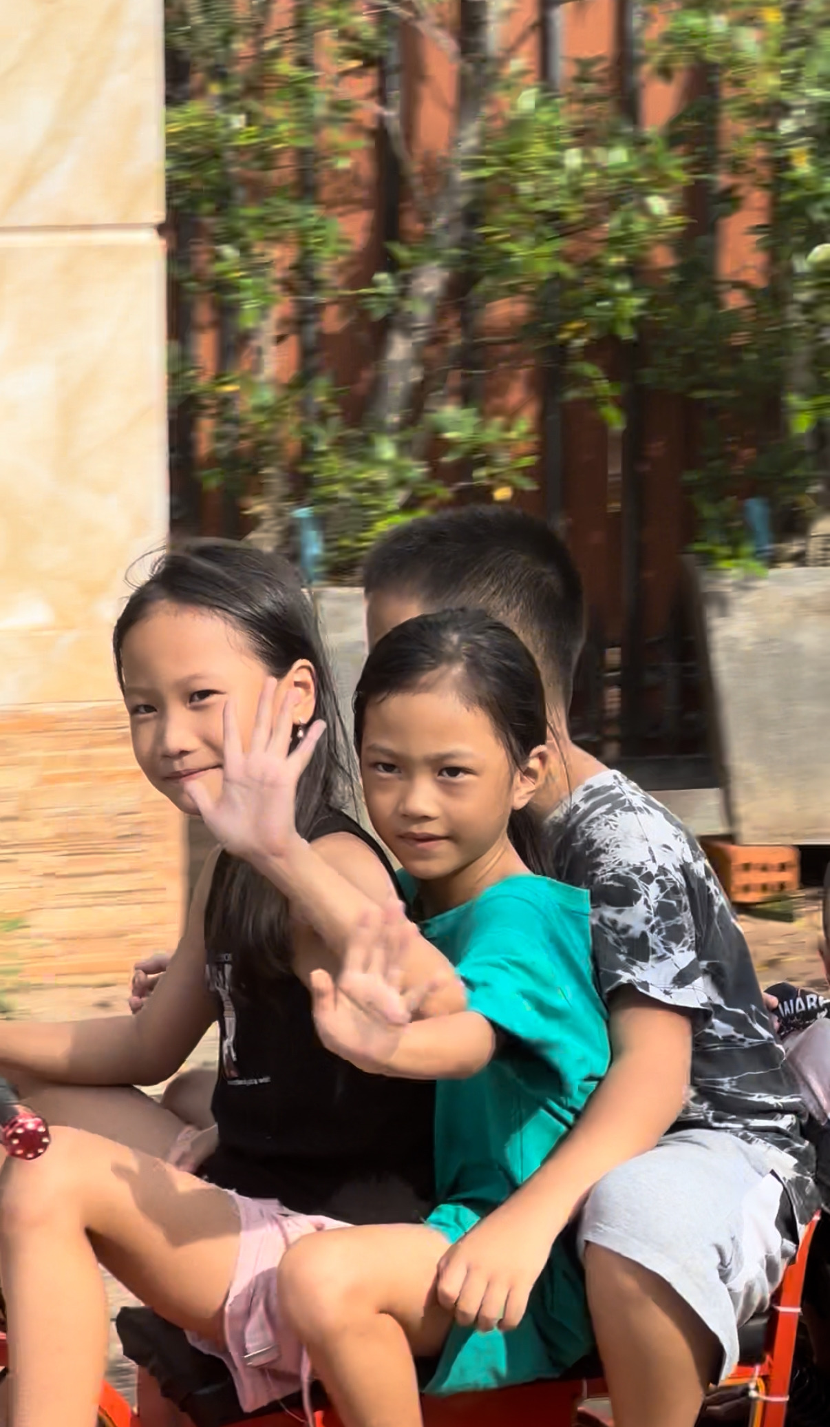 맨 뒤의 아이는 시야에서 우리가 사라질 때까지 뒤를 돌아보며 손을 흔들었다.