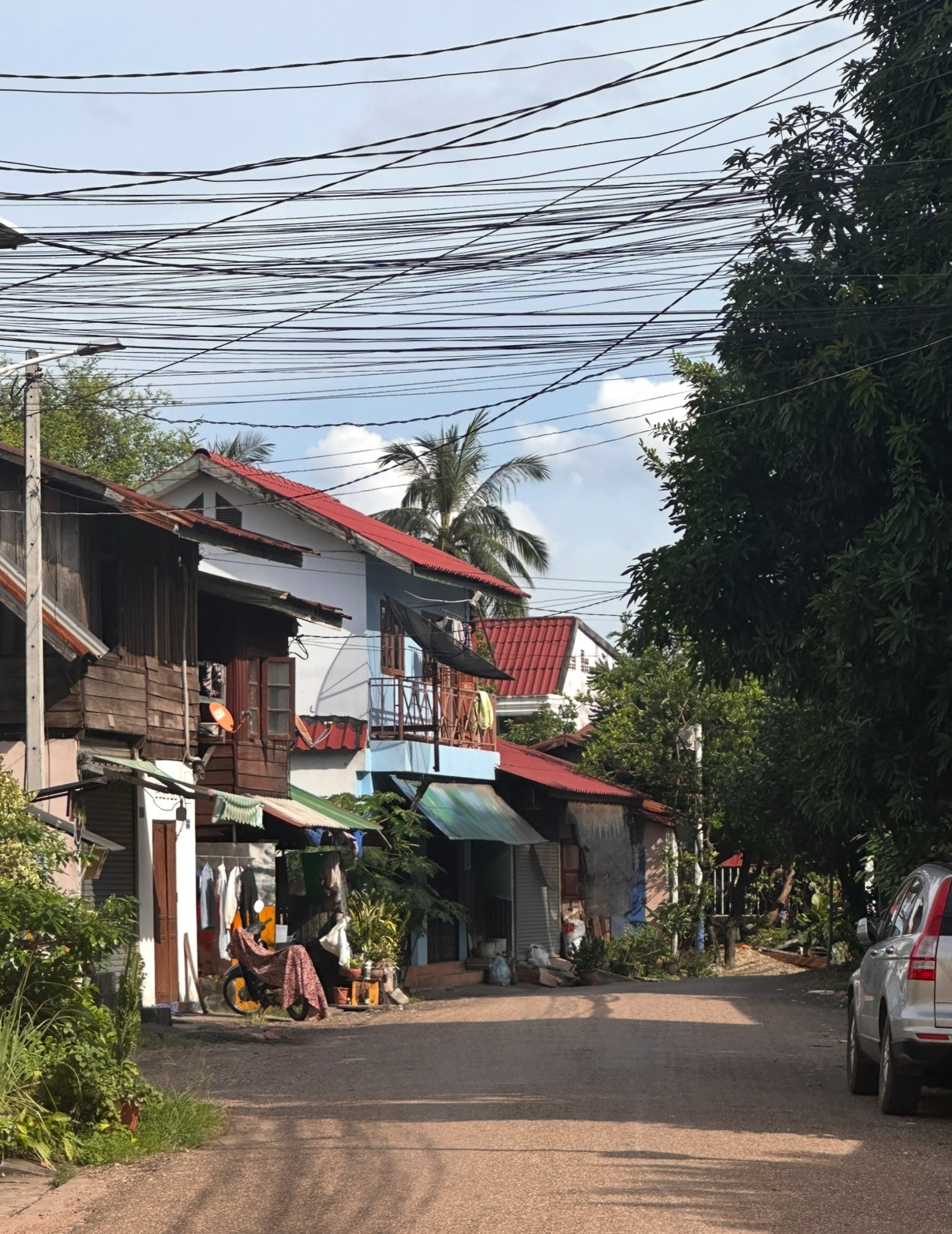 도로 옆, 낮은 담장 너머로 줄줄이 널린 빨래들이 바람에 흔들리고 있었다.