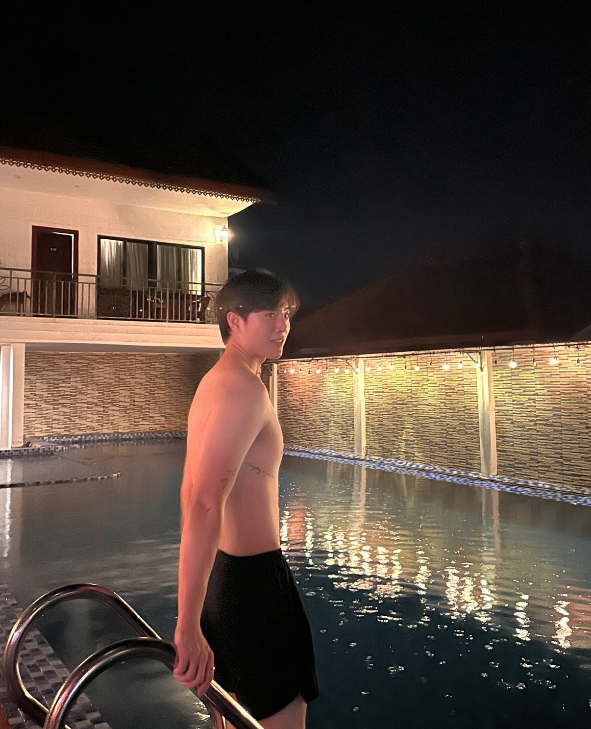 불 꺼진 호텔 안을 플래시로 비추며 수영장을 향해 걸어갔다.